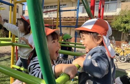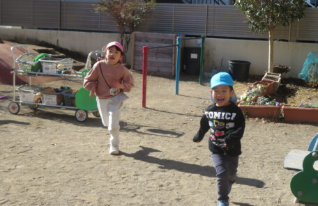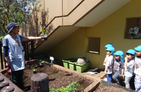 いろいろなものに触れて遊び、学べるビオトープのある保育園です。