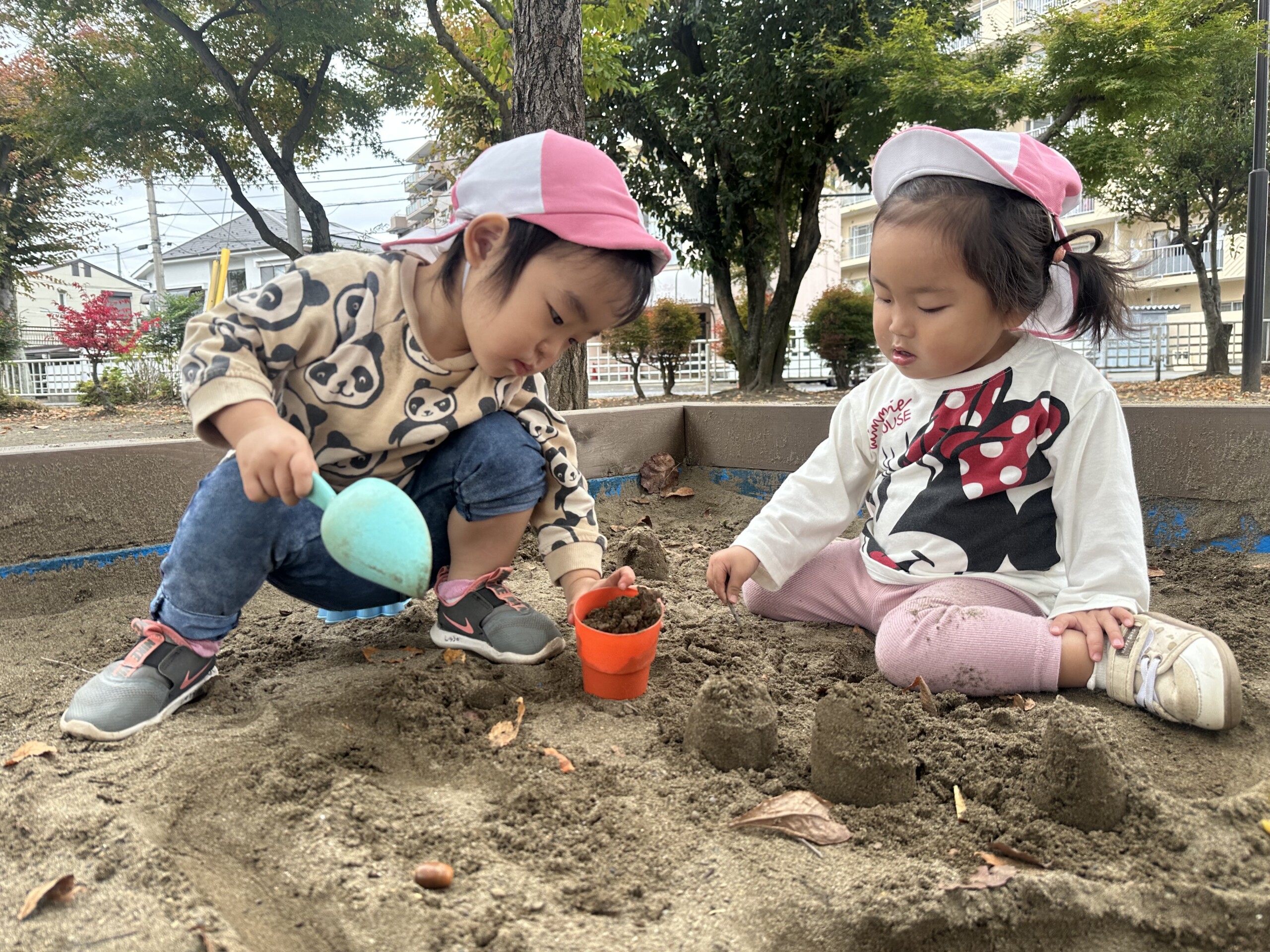 あひる組での生活もあっという間に7ヶ月が過ぎました。遊びの幅がぐーんと広がってきて、友達との関わりも増えてきてました。友達のしていることが気になって近くで様子を見たり、一緒に真似をして遊んだりしています。お友達が泣いてしまっているのを見つけると、自分の持っているおもちゃを貸してあげたり、「だーじょーぶ?(大丈夫?)」と声を掛けてあげたりと優しいです。時にはぶつかってしまうこともありますが、「貸して」「ごめんね」「ありがとう」等言葉でのやりとりも少しずつできるようになってきました。お友達との関わり方を伝えながら毎日楽しく笑顔で過ごせていけたらいいなと思います。それでは可愛いあひる組の子どもたちの様子をどうぞご覧ください。 大賀