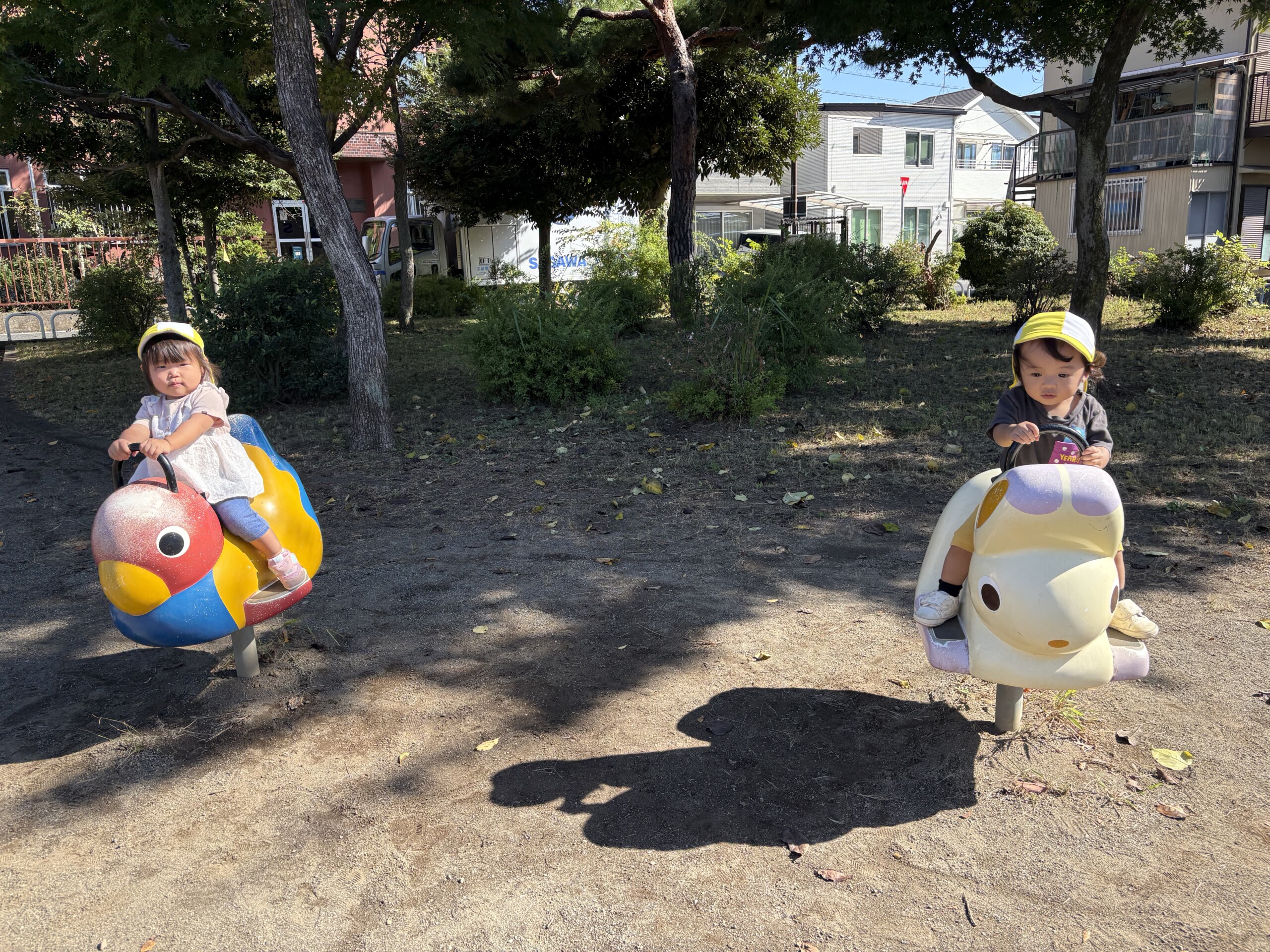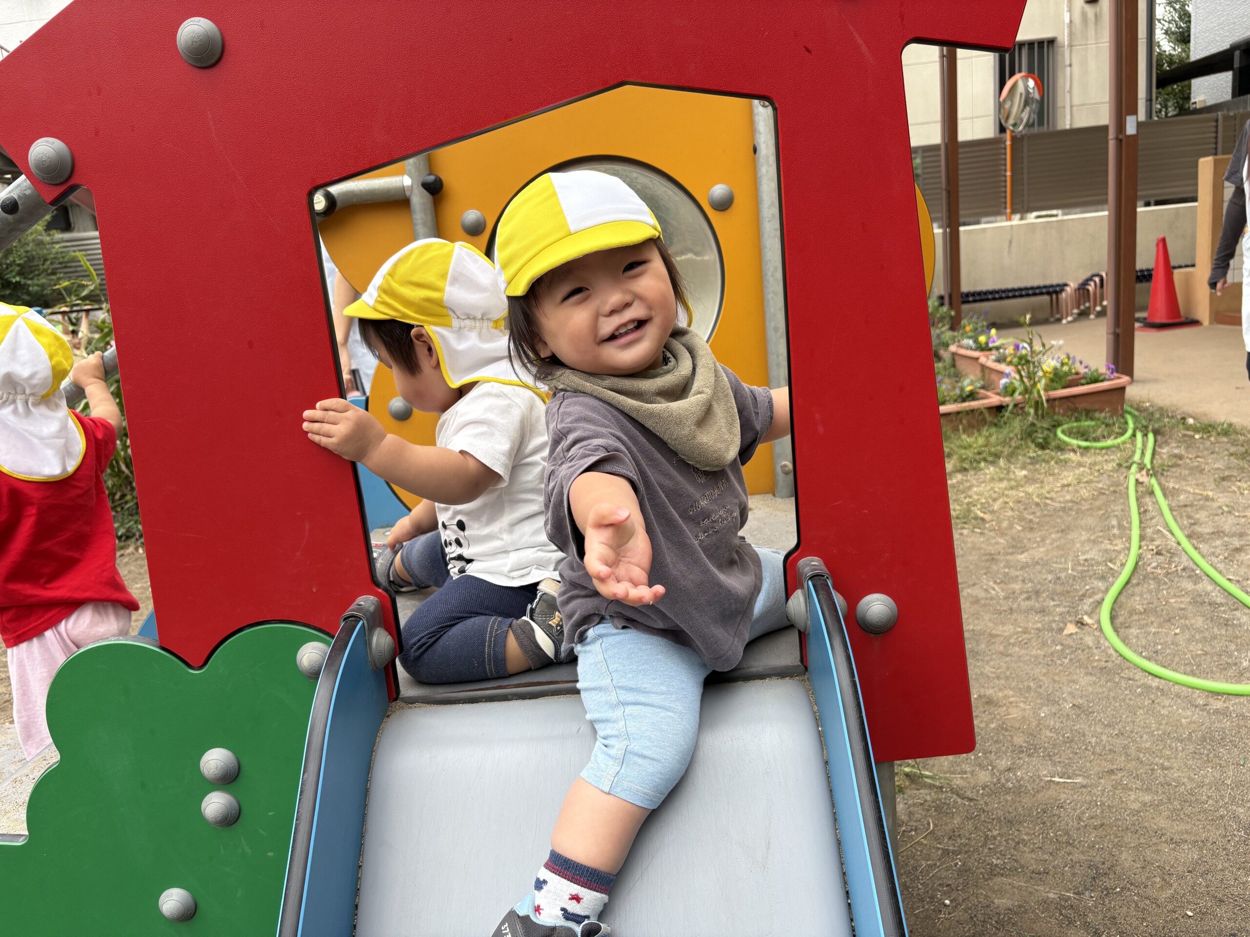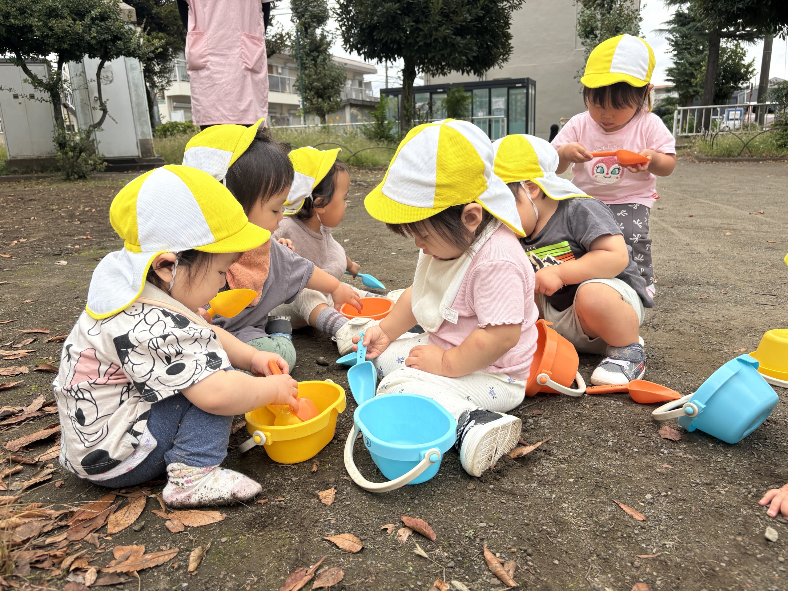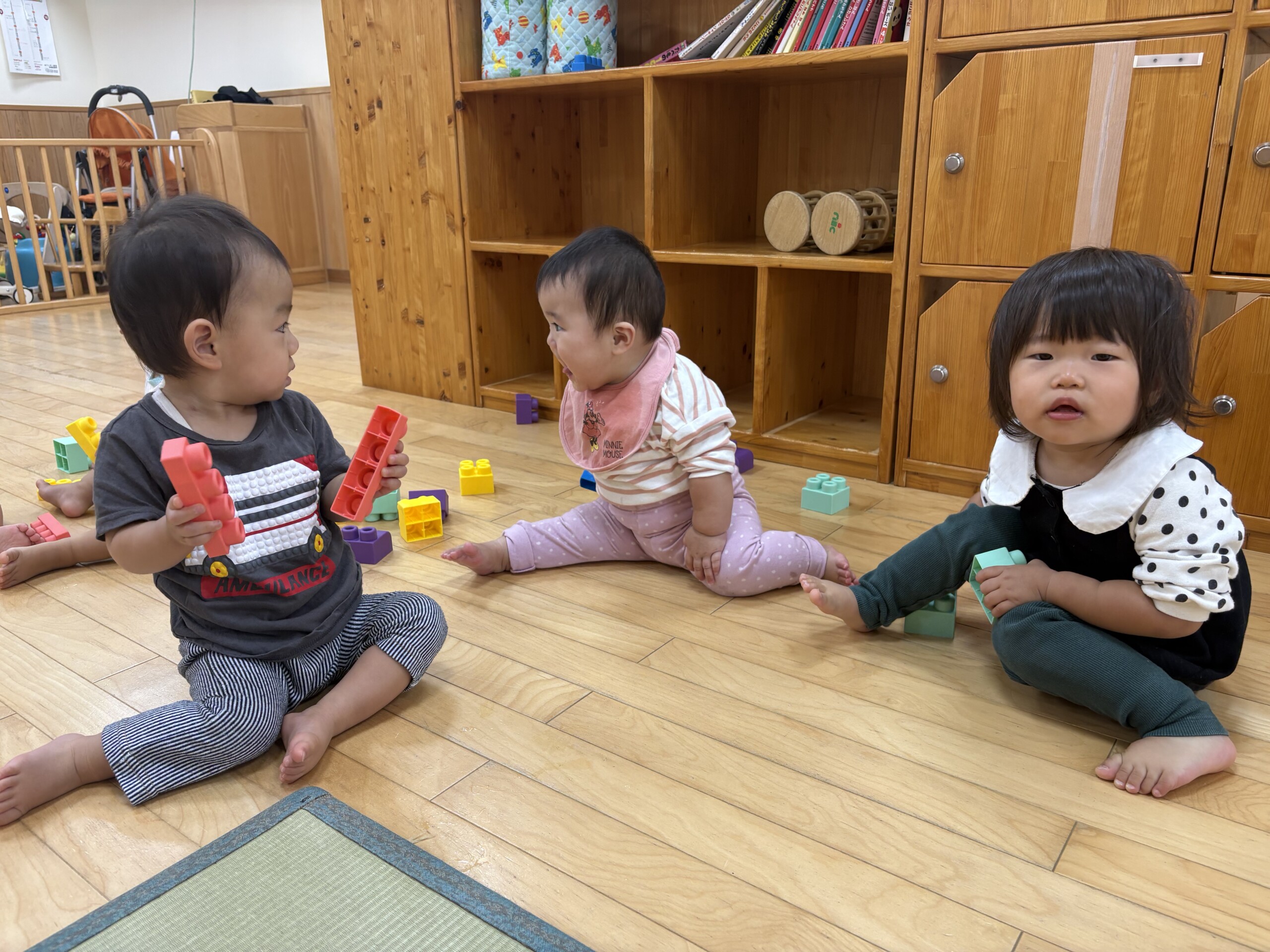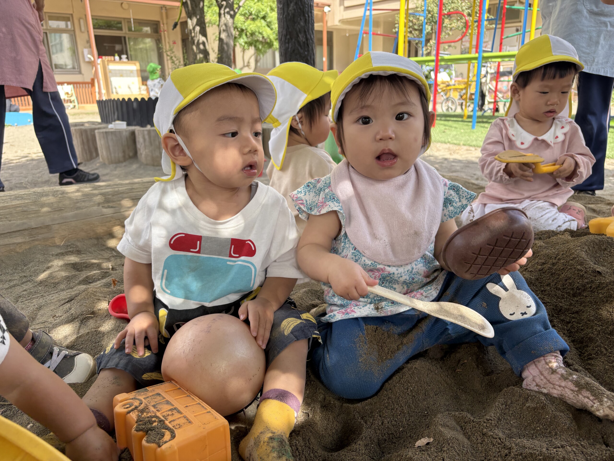 日差しの強い夏の時期も終わり、過ごしやすい気温で戸外遊びがさらに楽しい時期になってきましたね。ひよこ組のお友達も、元気いっぱい戸外で遊んでいます!! 行動範囲もぐーんと広がってきて、ハイハイや伝い歩き、一人歩きで興味のある場所へ移動しそれぞれ遊びを楽しんでいます。ベビーカーや散歩車でのお散歩も楽しんでいて電車が見えると“バイバイ“や”おーい”と手を振ったり、車やお散歩をしている犬に会うと指を差したりいろいろなことに興味津々です。 これからもたくさんの経験、体験をして大きくなっていってほしいなと思います☆ それでは可愛いひよこ組の子どもたちが遊んでいる様子をご覧ください♪ 奥田
