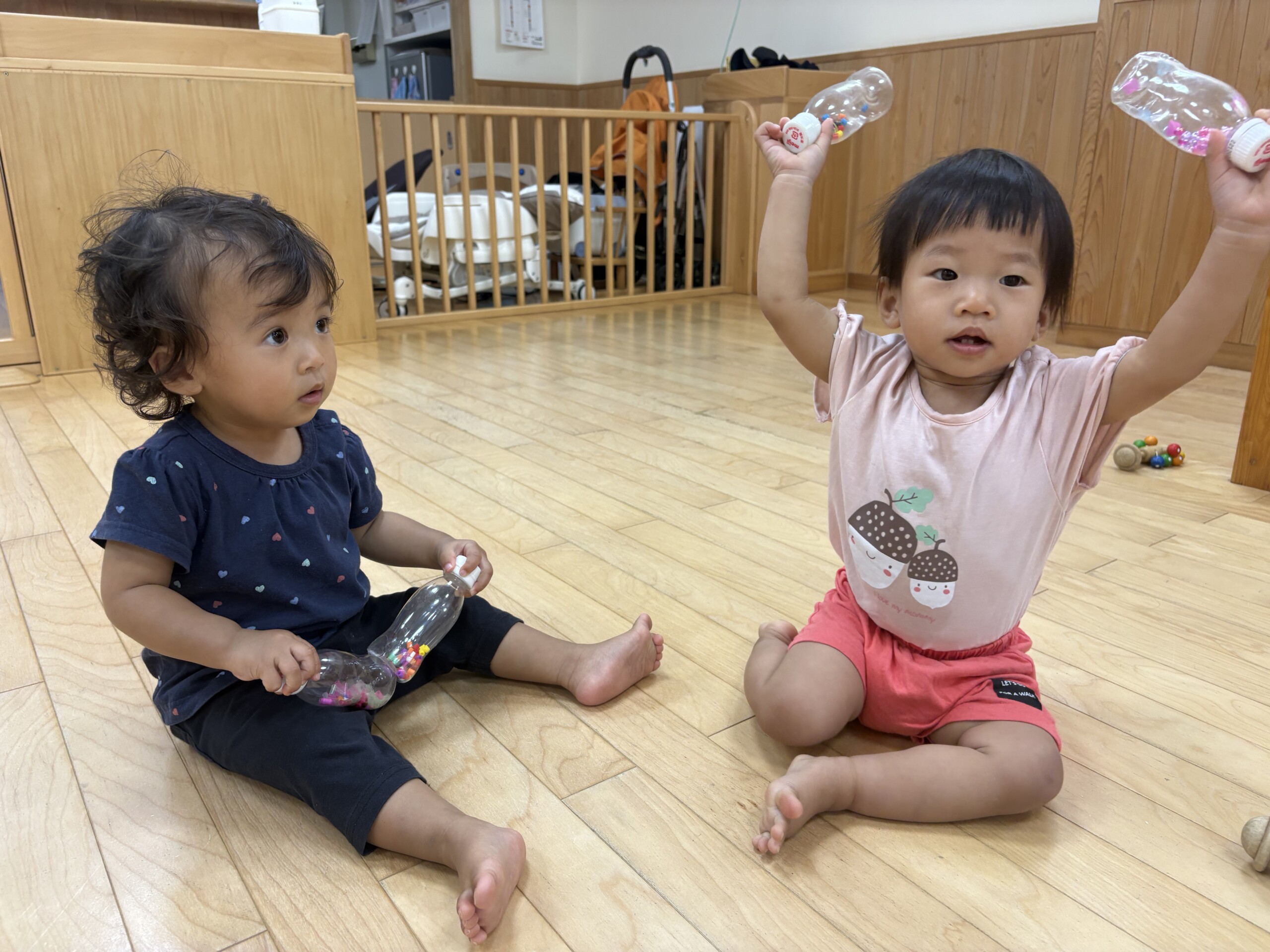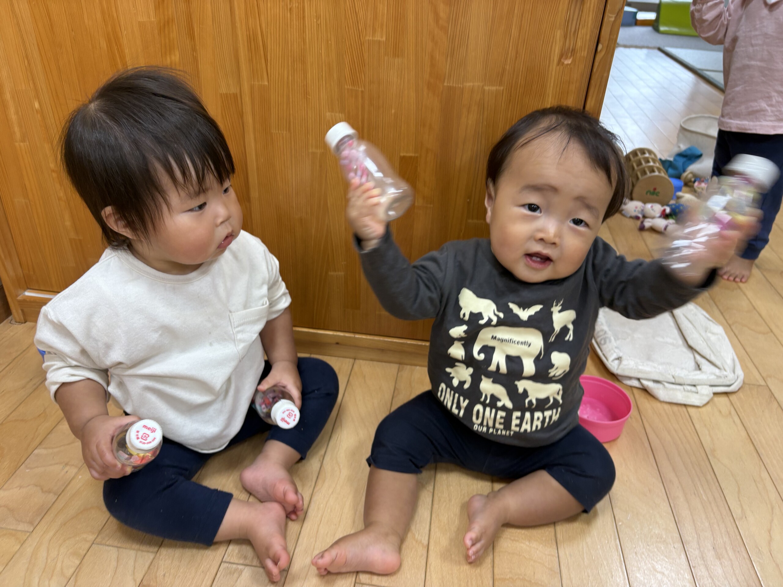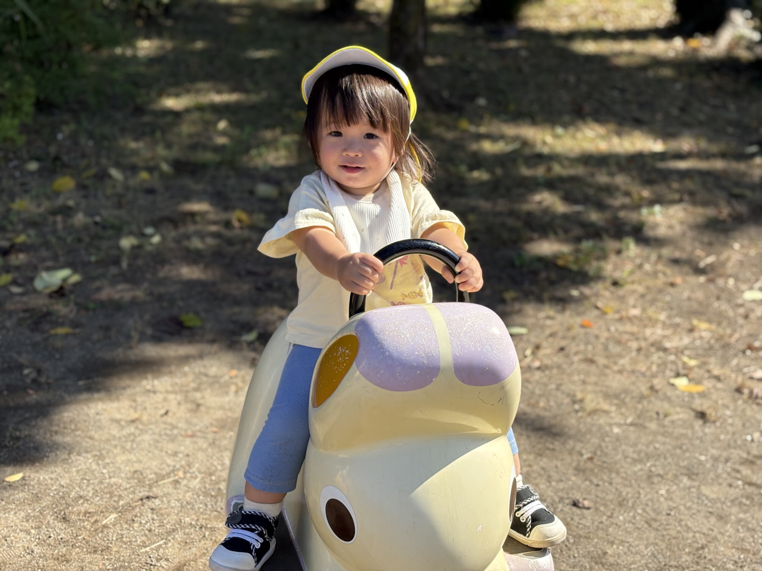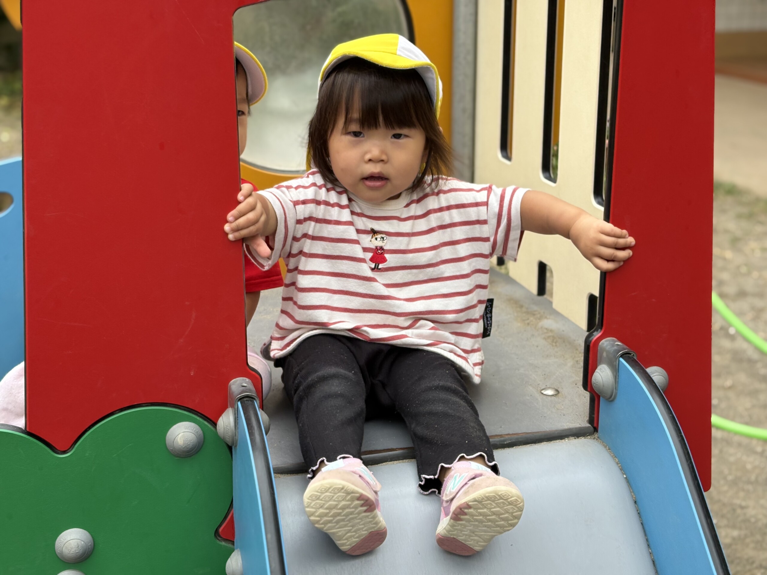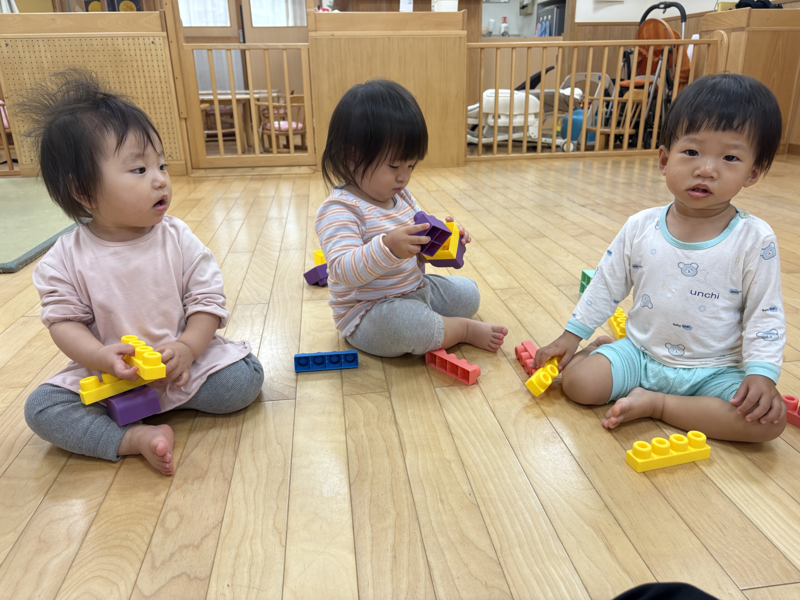 日差しの強い夏の時期も終わり、過ごしやすい気温で戸外遊びがさらに楽しい時期になってきましたね。ひよこ組のお友達も、元気いっぱい戸外で遊んでいます!! 行動範囲もぐーんと広がってきて、ハイハイや伝い歩き、一人歩きで興味のある場所へ移動しそれぞれ遊びを楽しんでいます。ベビーカーや散歩車でのお散歩も楽しんでいて電車が見えると“バイバイ“や”おーい”と手を振ったり、車やお散歩をしている犬に会うと指を差したりいろいろなことに興味津々です。 これからもたくさんの経験、体験をして大きくなっていってほしいなと思います☆ それでは可愛いひよこ組の子どもたちが遊んでいる様子をご覧ください♪ 奥田