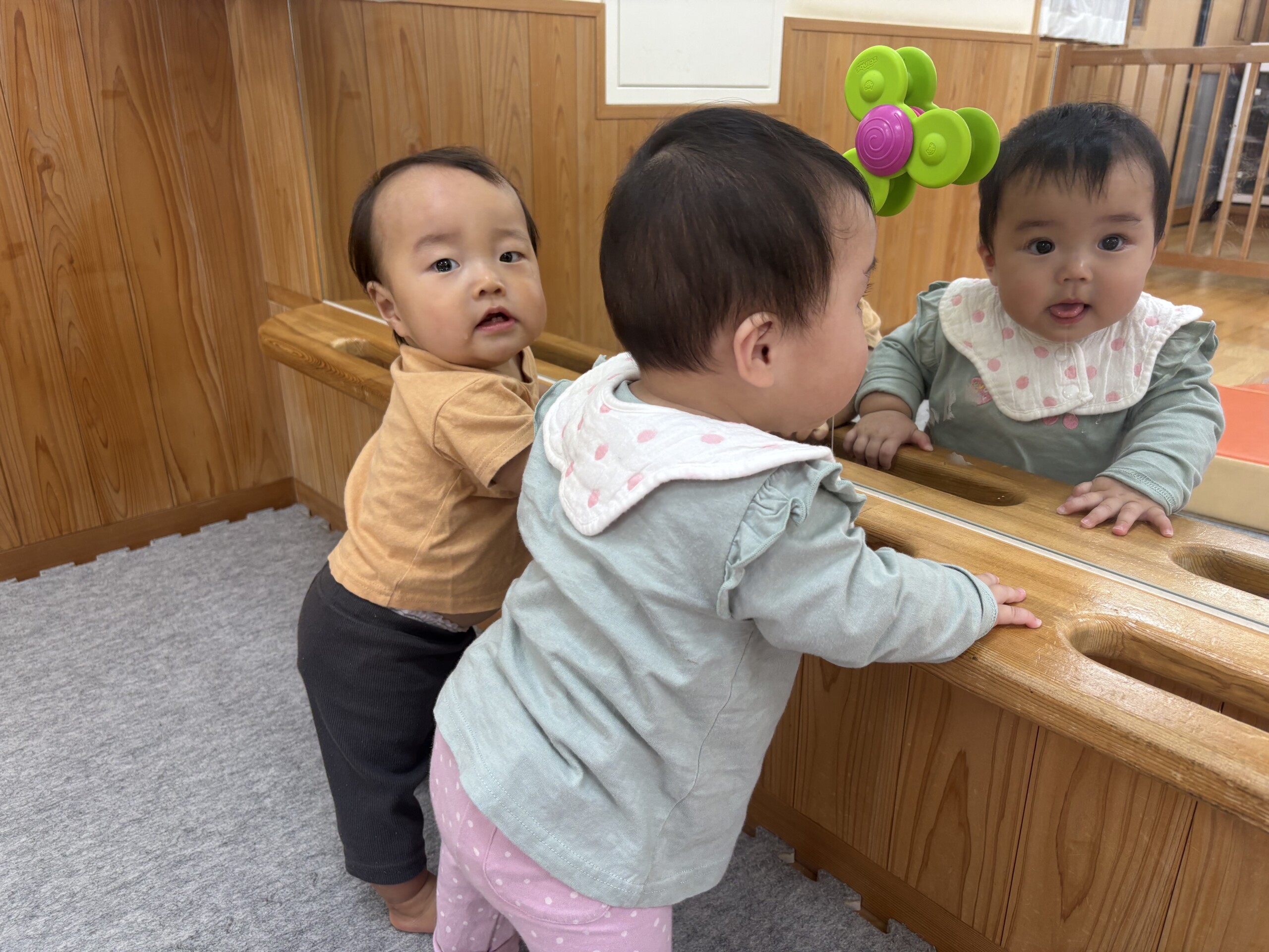 日差しの強い夏の時期も終わり、過ごしやすい気温で戸外遊びがさらに楽しい時期になってきましたね。ひよこ組のお友達も、元気いっぱい戸外で遊んでいます!! 行動範囲もぐーんと広がってきて、ハイハイや伝い歩き、一人歩きで興味のある場所へ移動しそれぞれ遊びを楽しんでいます。ベビーカーや散歩車でのお散歩も楽しんでいて電車が見えると“バイバイ“や”おーい”と手を振ったり、車やお散歩をしている犬に会うと指を差したりいろいろなことに興味津々です。 これからもたくさんの経験、体験をして大きくなっていってほしいなと思います☆ それでは可愛いひよこ組の子どもたちが遊んでいる様子をご覧ください♪ 奥田