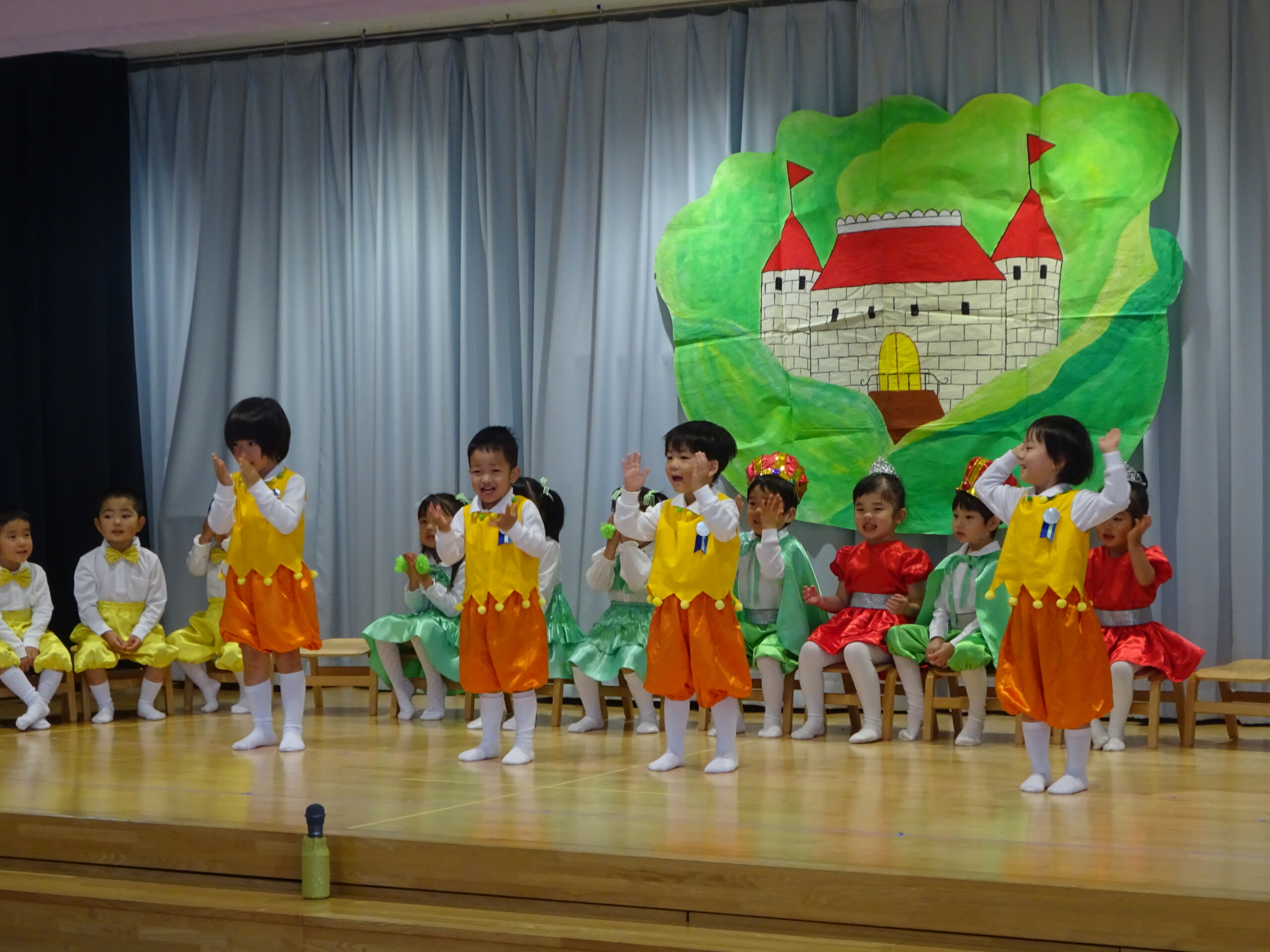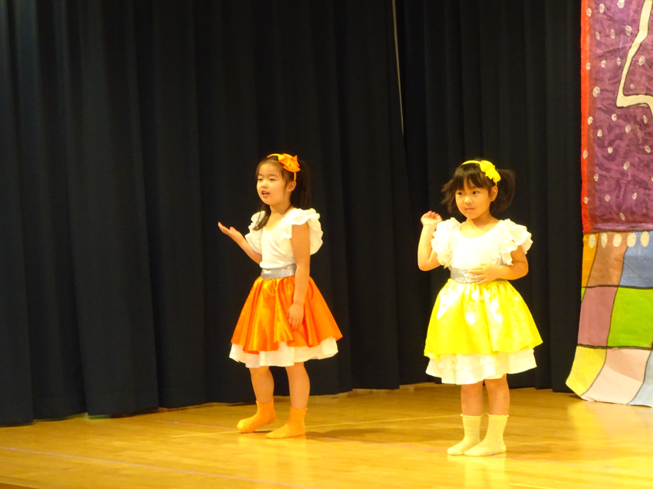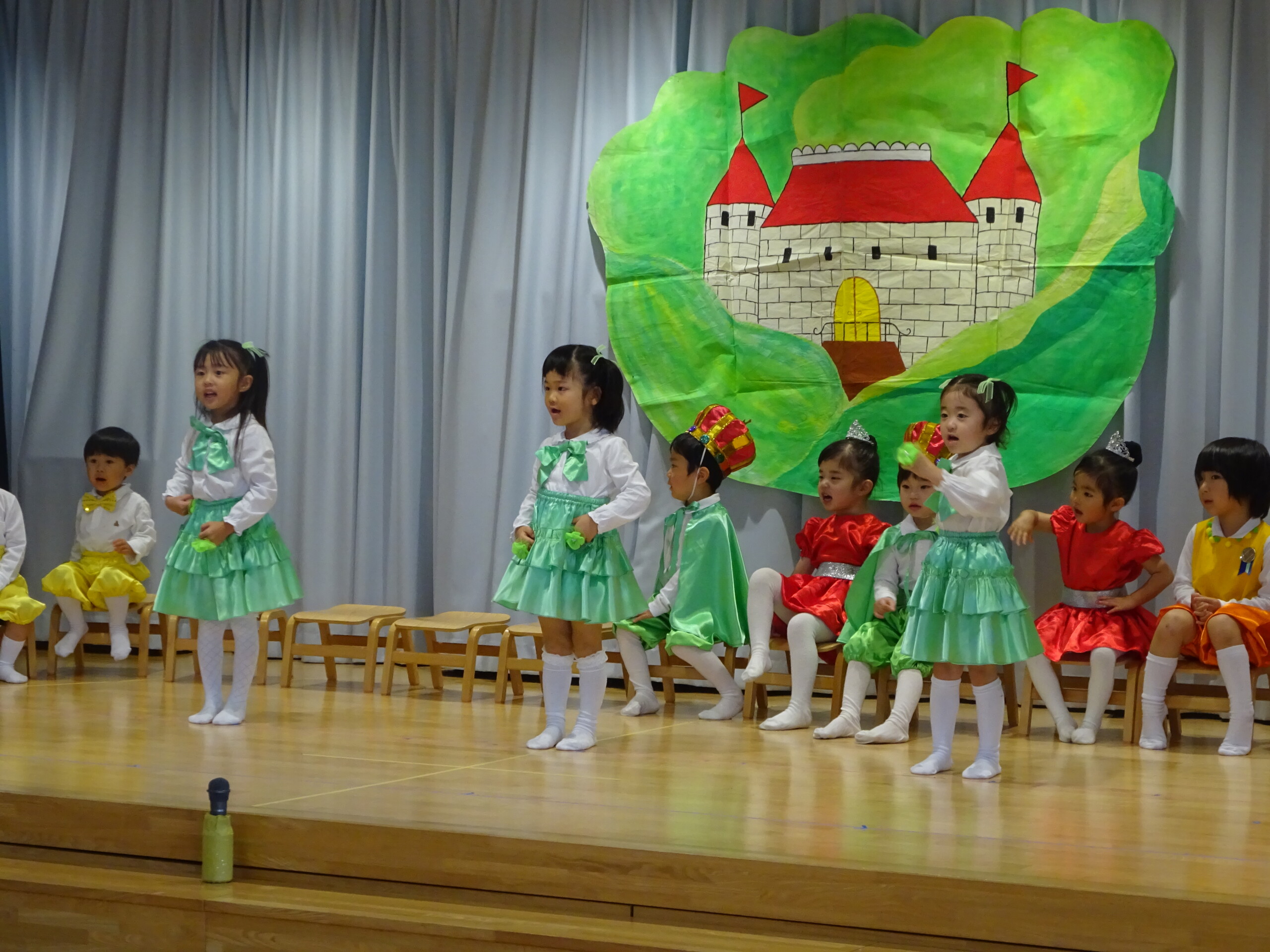11月26日(水)、27日(木)の2日間で発表会の総練習と、写真撮影がありました。1日目は、4歳児くま組のお遊戯、5歳児きりん組のオペレッタ。2日目は、きりん組の合唱、合奏、3歳児しか組のオペレッタを行いました。初めて衣装を着た子ども達は、とても嬉しそうに舞台に立っていました。当日は、大勢のお客さんの前でドキドキしてしまう子もいるかと思いますが、笑顔で楽しみながら参加できるよう、本番まで練習を進めていきたいと思います。太田