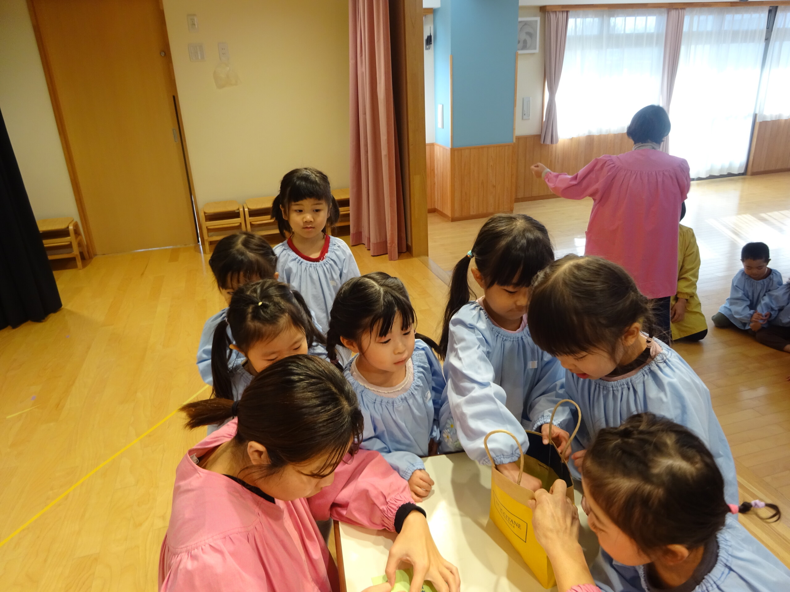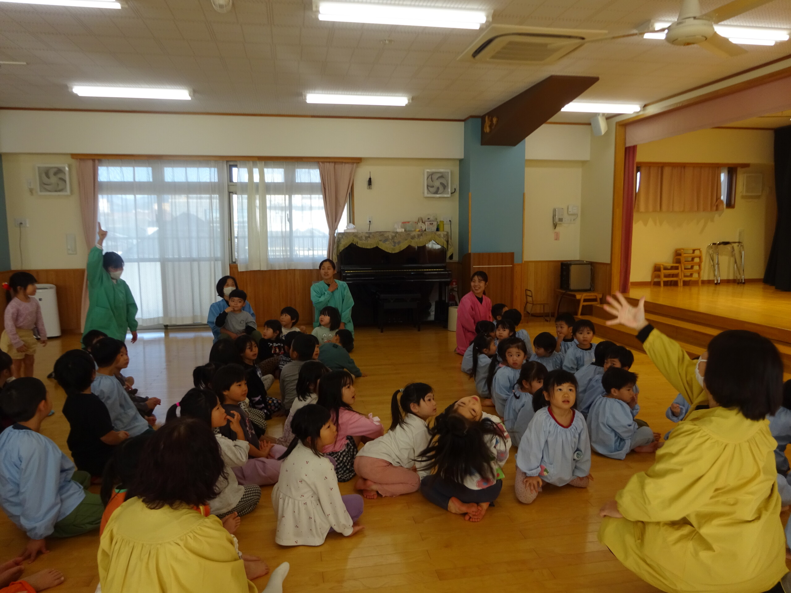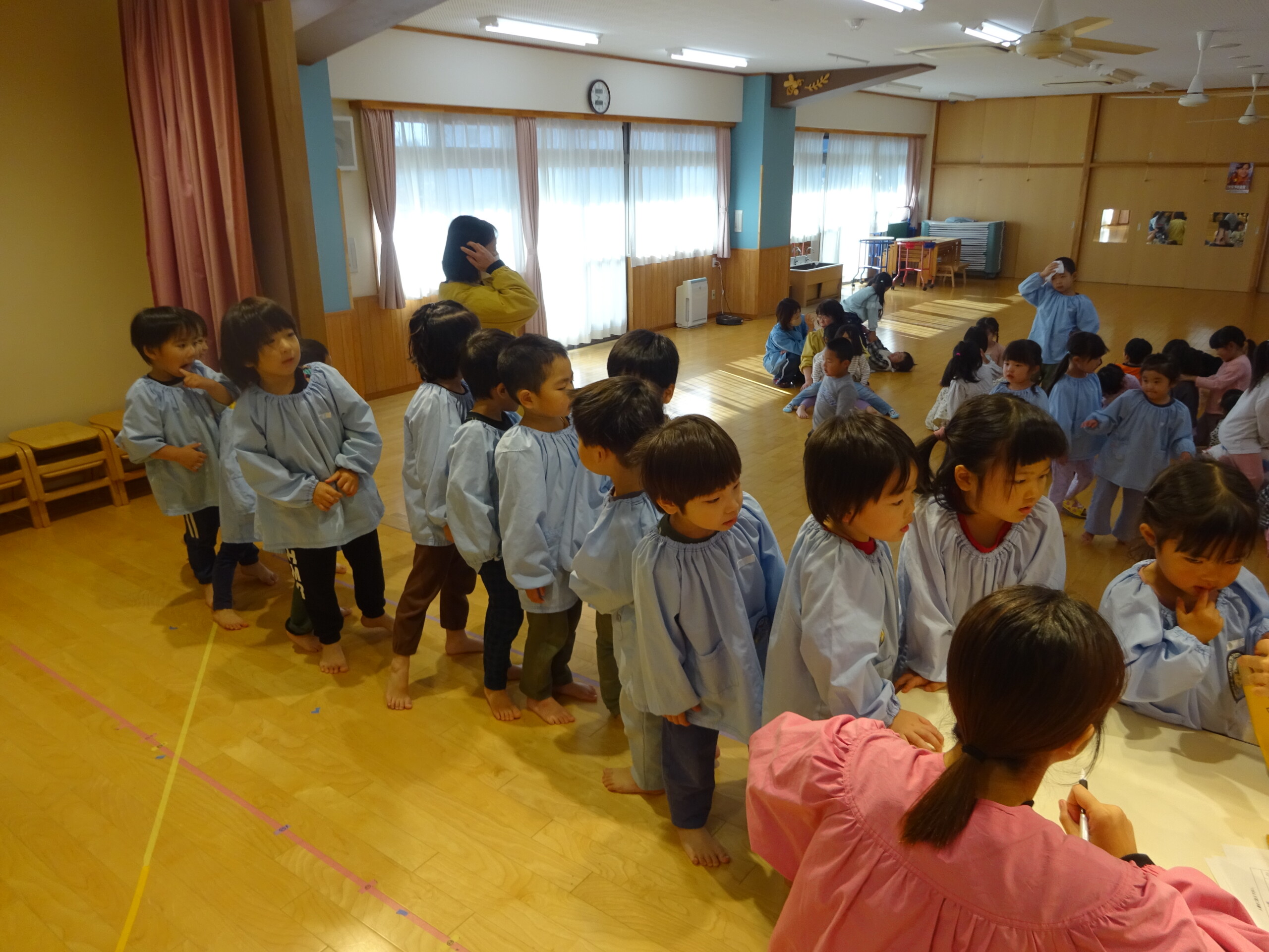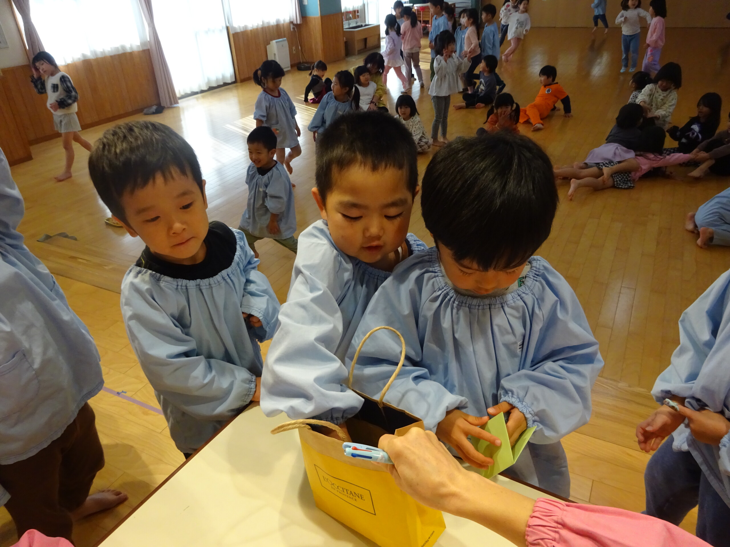 12月4日(木) しか組、くま組、きりん組さんがホールに集まり、発表会当日の保護者の皆さまの入場の順番を決めるくじを、子ども達に引いてもらいました。きょうだい児は、1枚のくじを仲良く一緒に引きました。保育士の説明を真剣に聞いていた子ども達は、並んで待っている間も興味津々でした。※お休みのお子さんの分は、主任が代理で引きました。 いよいよ発表会まであと2日です。当日は、子ども達を温かく見守っていただき、皆さまのご協力をよろしくお願いいたします。太田
