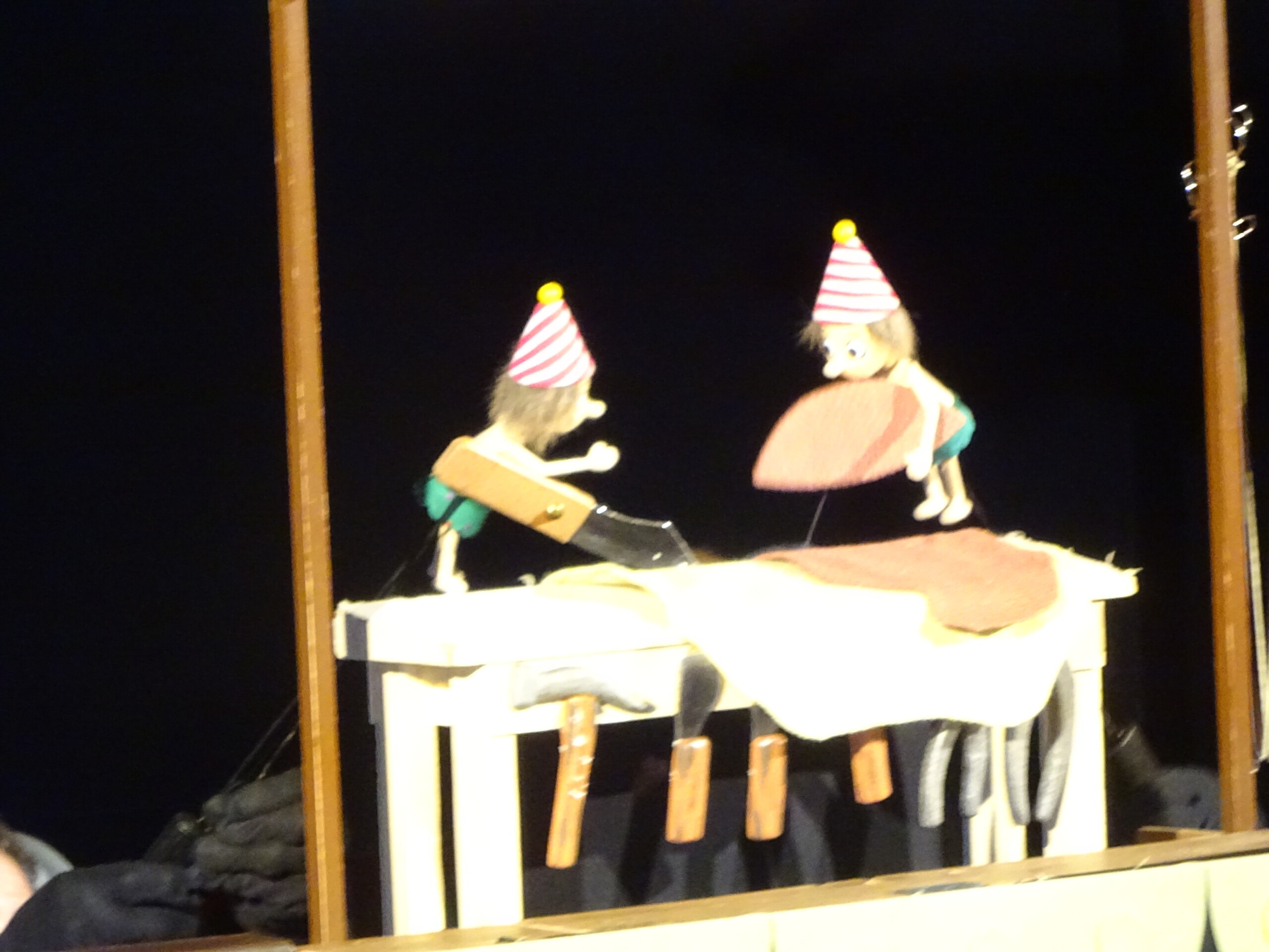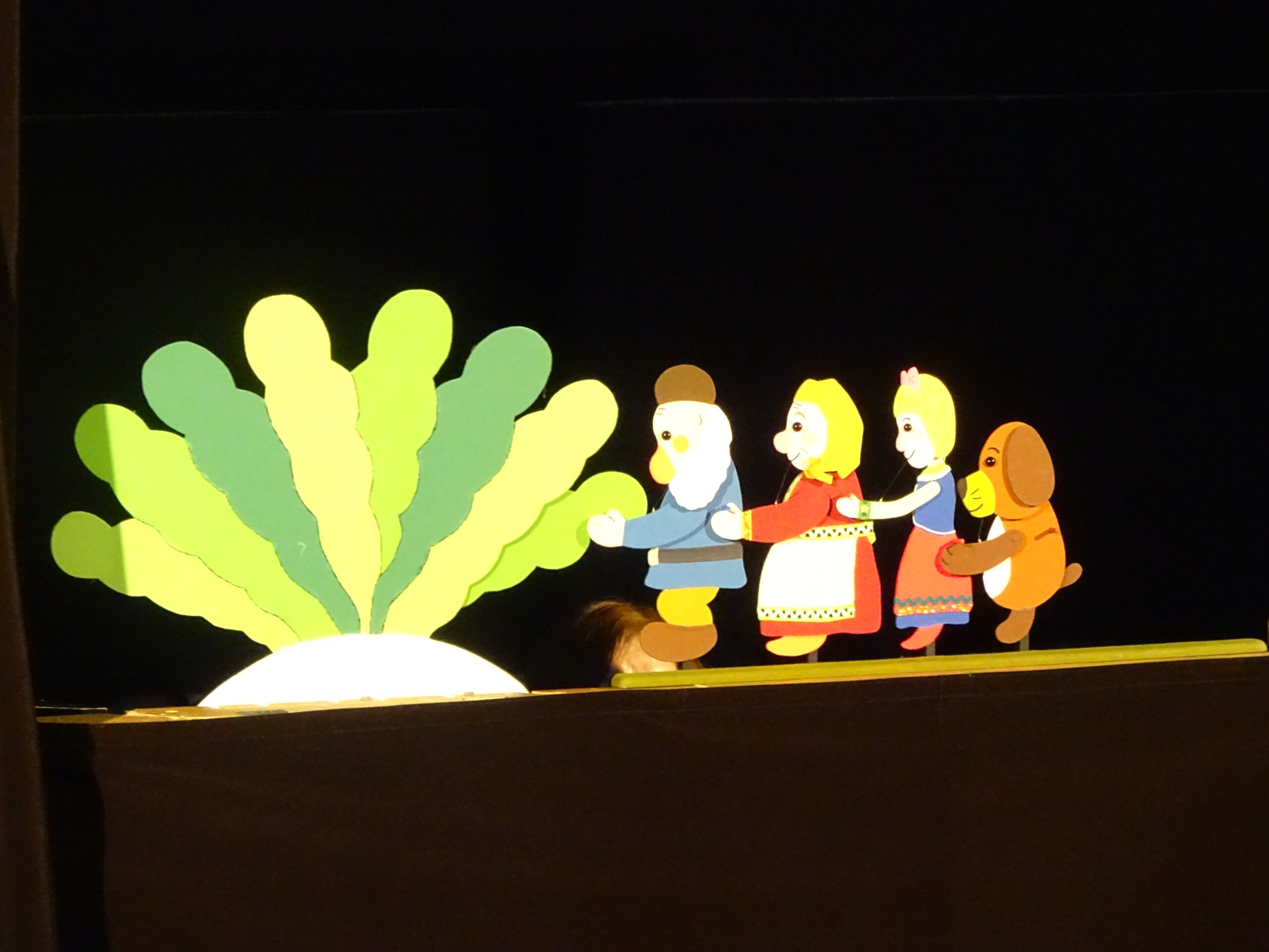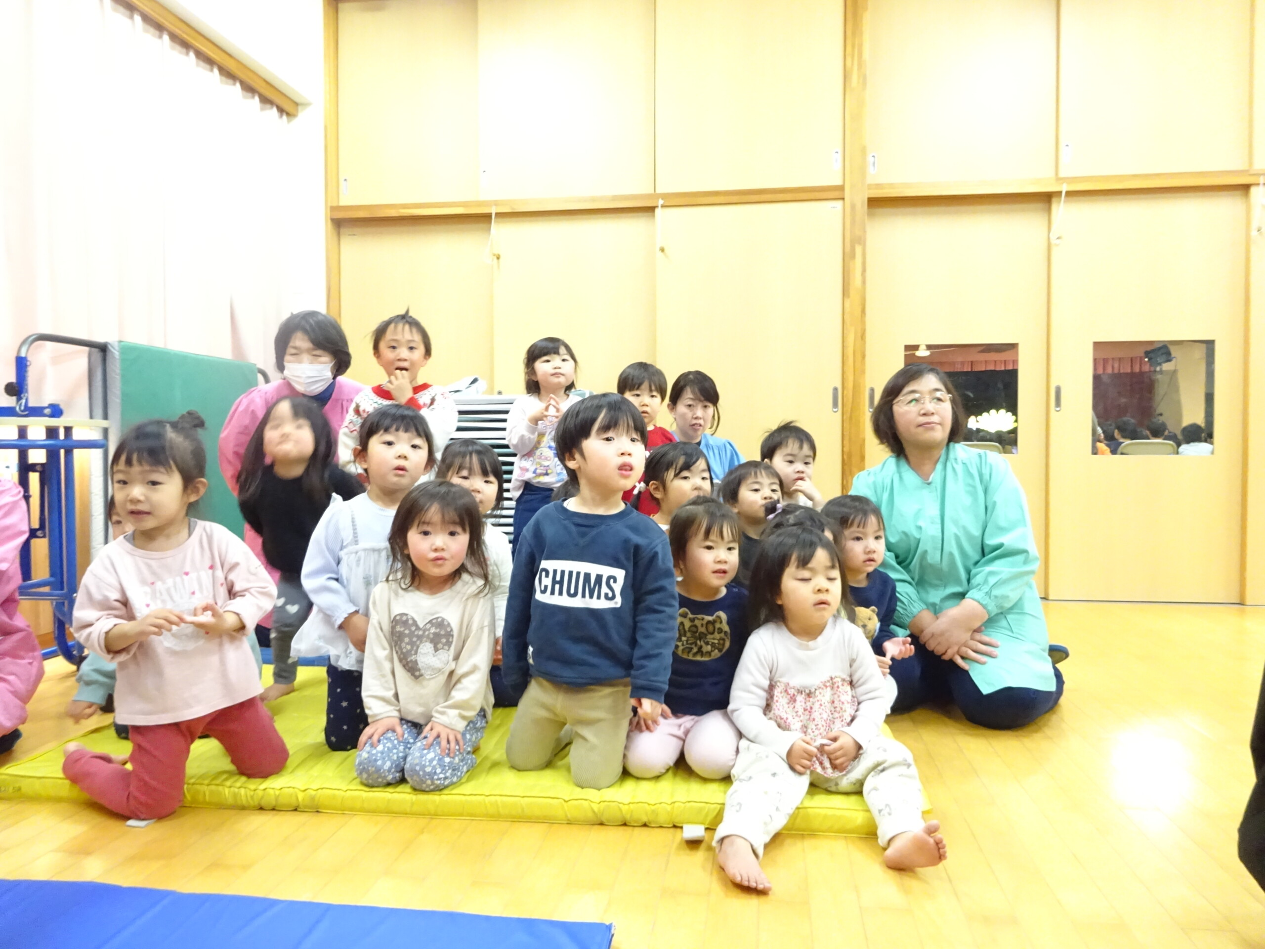 1月30日(金) みつばちホールで、人形劇団『パンタルカ』の公演がありました。未就園児さんも参加していただき、1歳児~5歳児クラスのお友達が集まりました。公演は3部構成となっていて、『おおきなかぶ』『歌の上手なにわとりさん』『こびとのくつや』を楽しみました。人形劇が始まると、人形の動きや繰り返しの動きに笑いが起きたり、音楽に合わせて体を左右に揺らしたり、かぶが抜けると拍手をして喜んだり…。『こびとのくつや』のお話では、こびとが作った靴が次から次へと出てきて、ひとつひとつの小道具にも興味津々の子ども達でした。パンタルカさん、楽しい時間をありがとうございました。太田