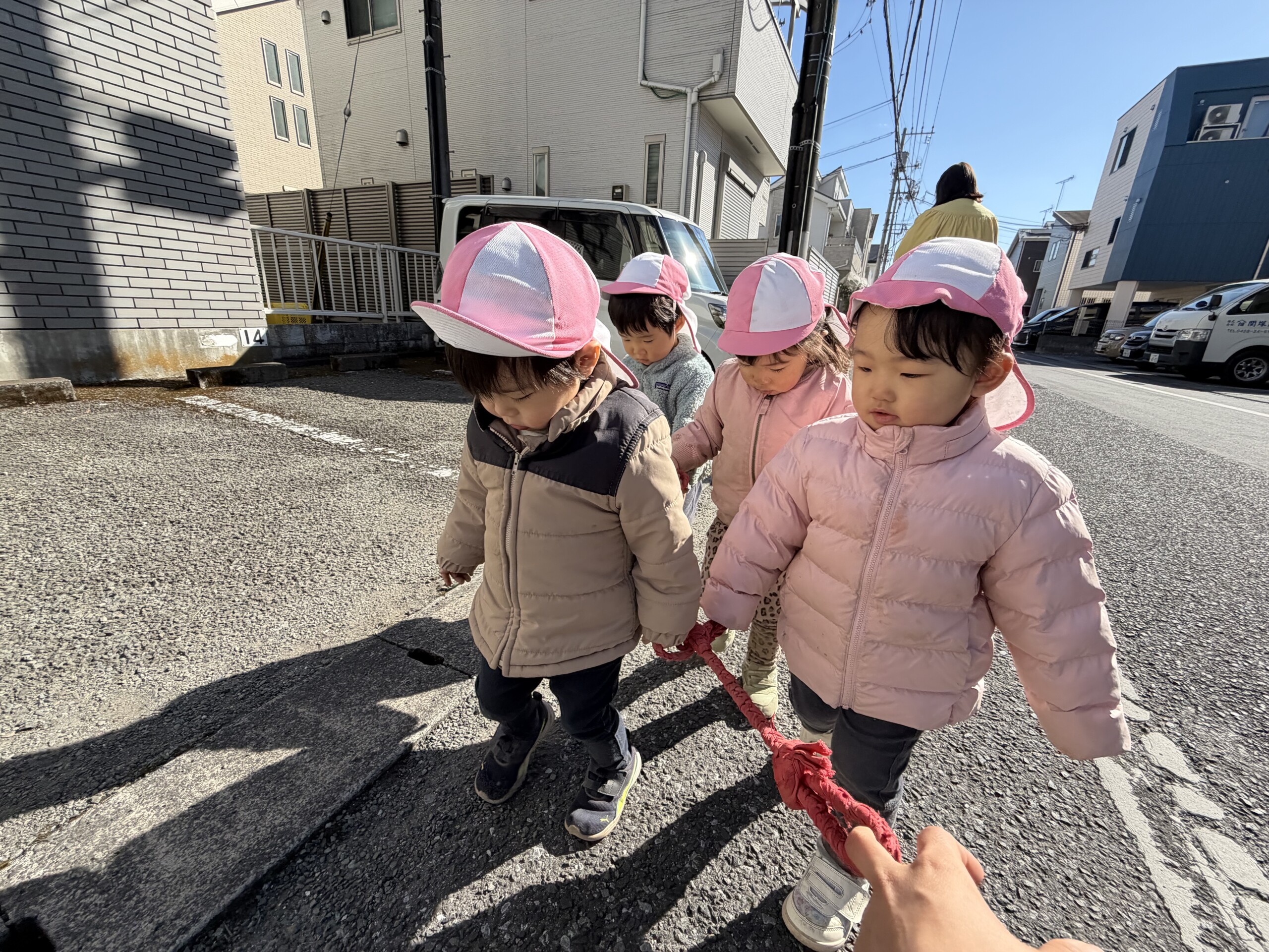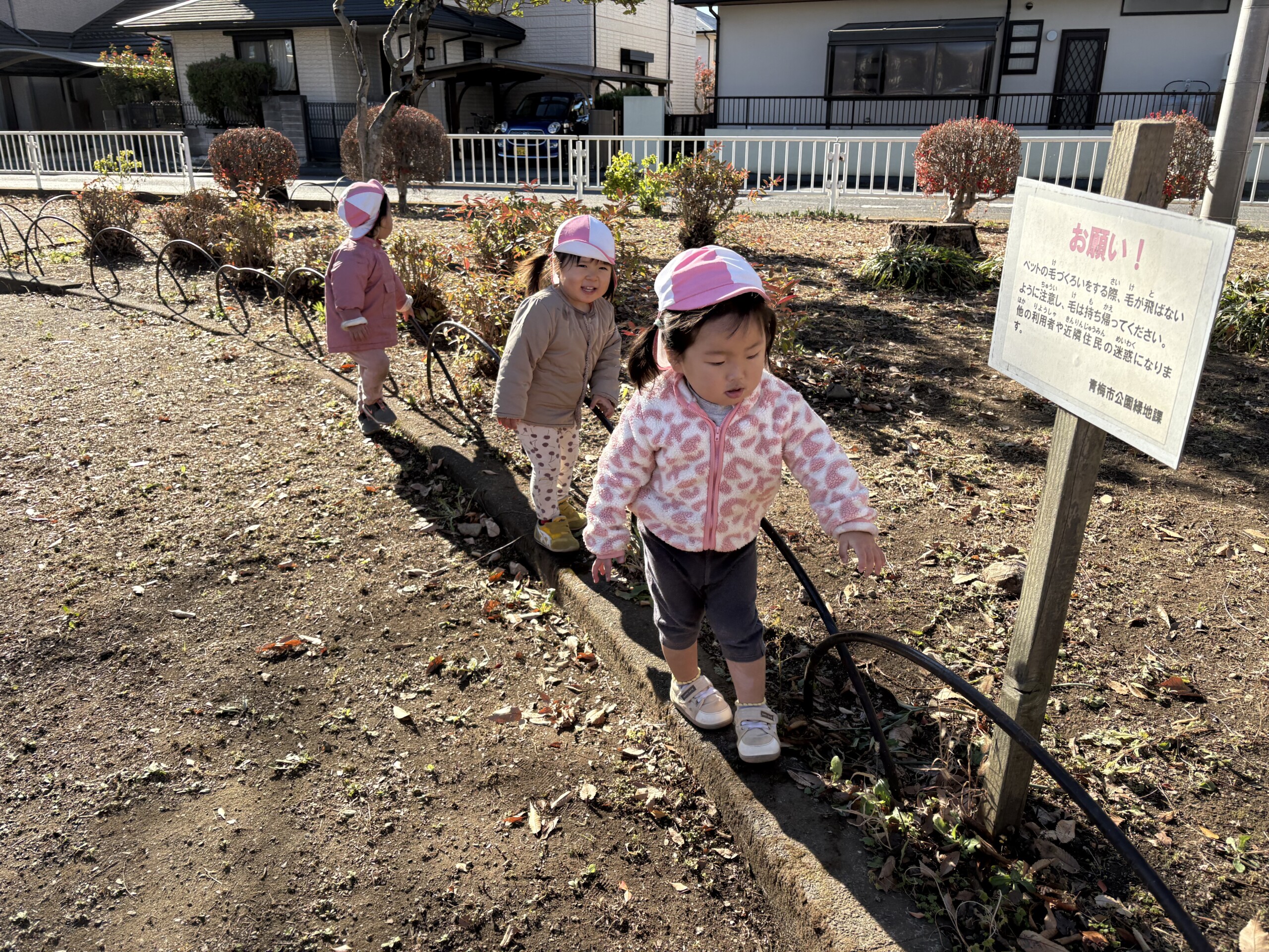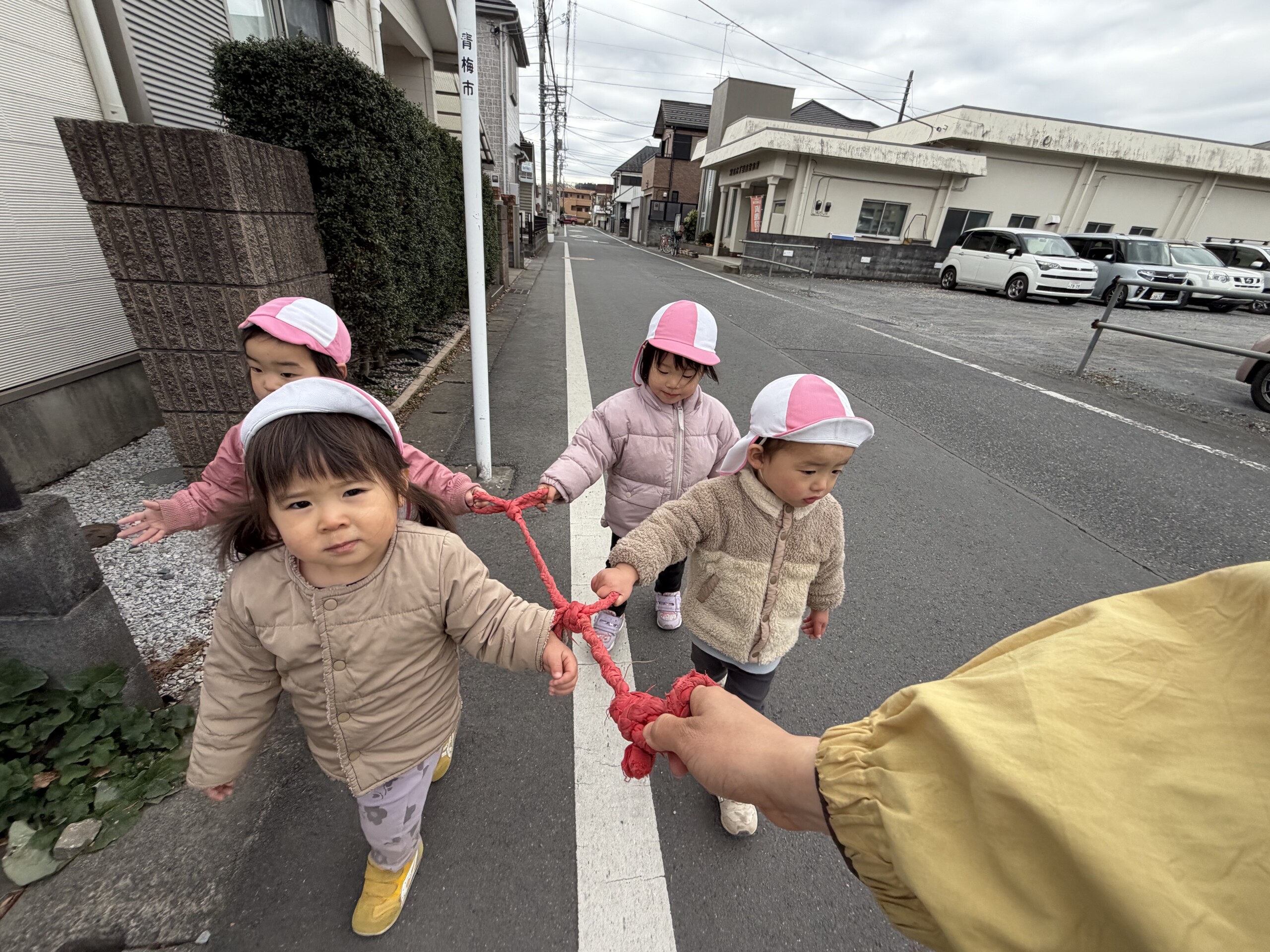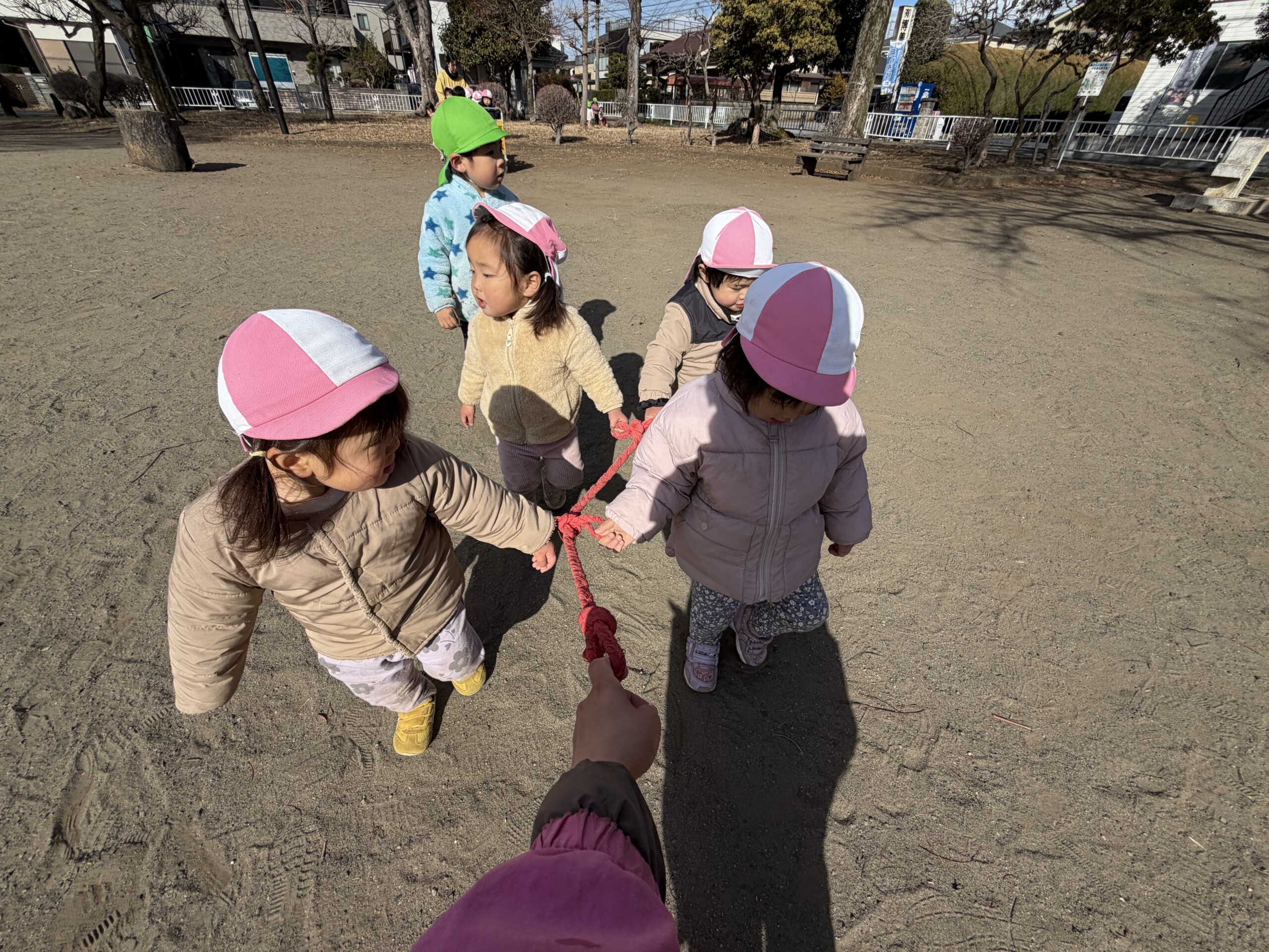 | 公園へ行く事が大好きなあひる組!誘導ロープを使って歩く練習を頑張っています!