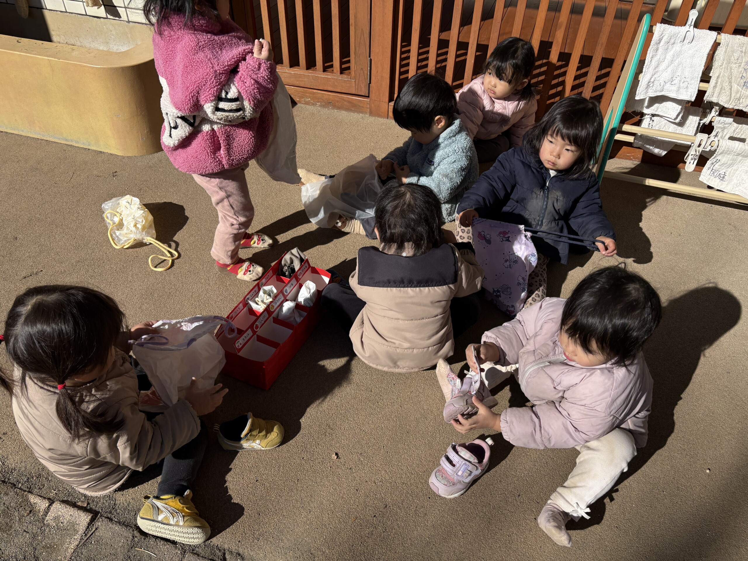 | 自分で靴を履いたり、しまったりもできるようになりました。
