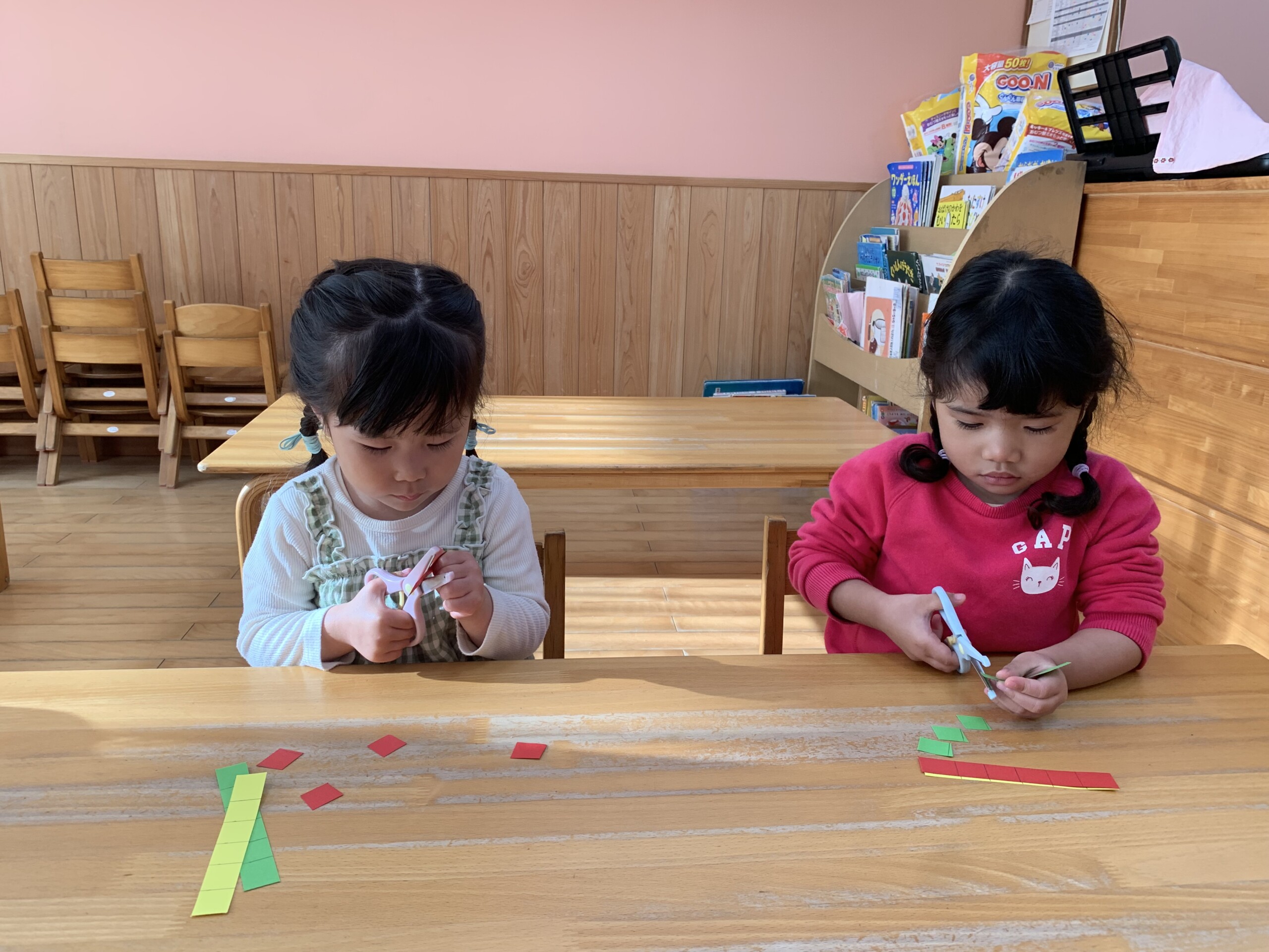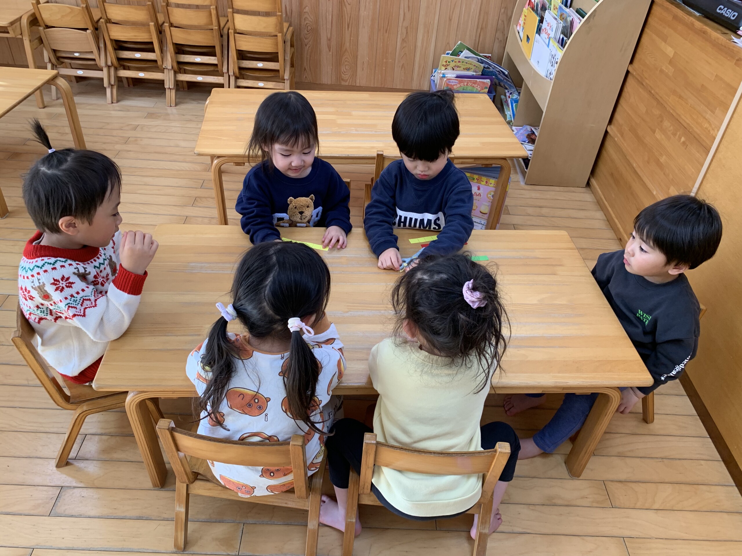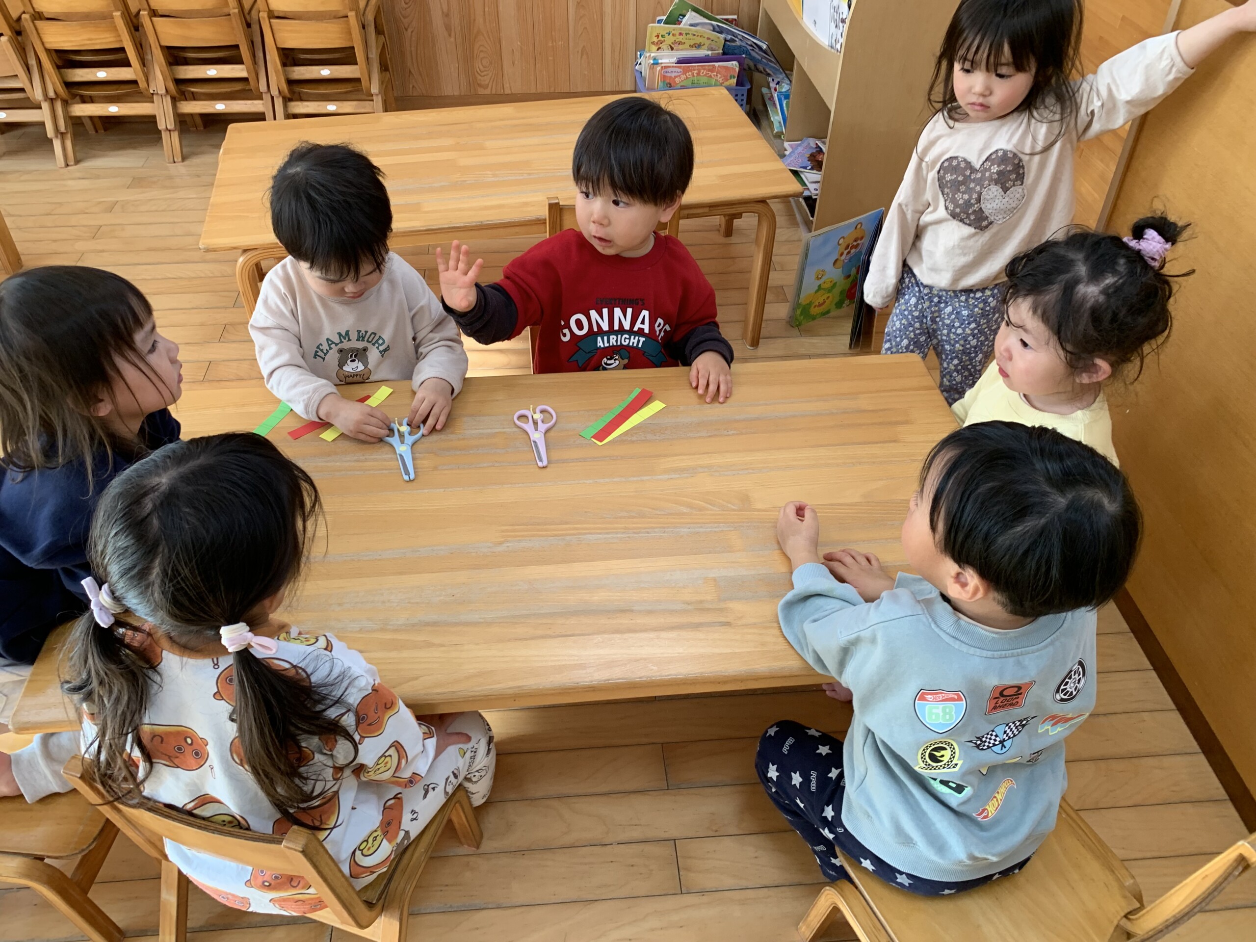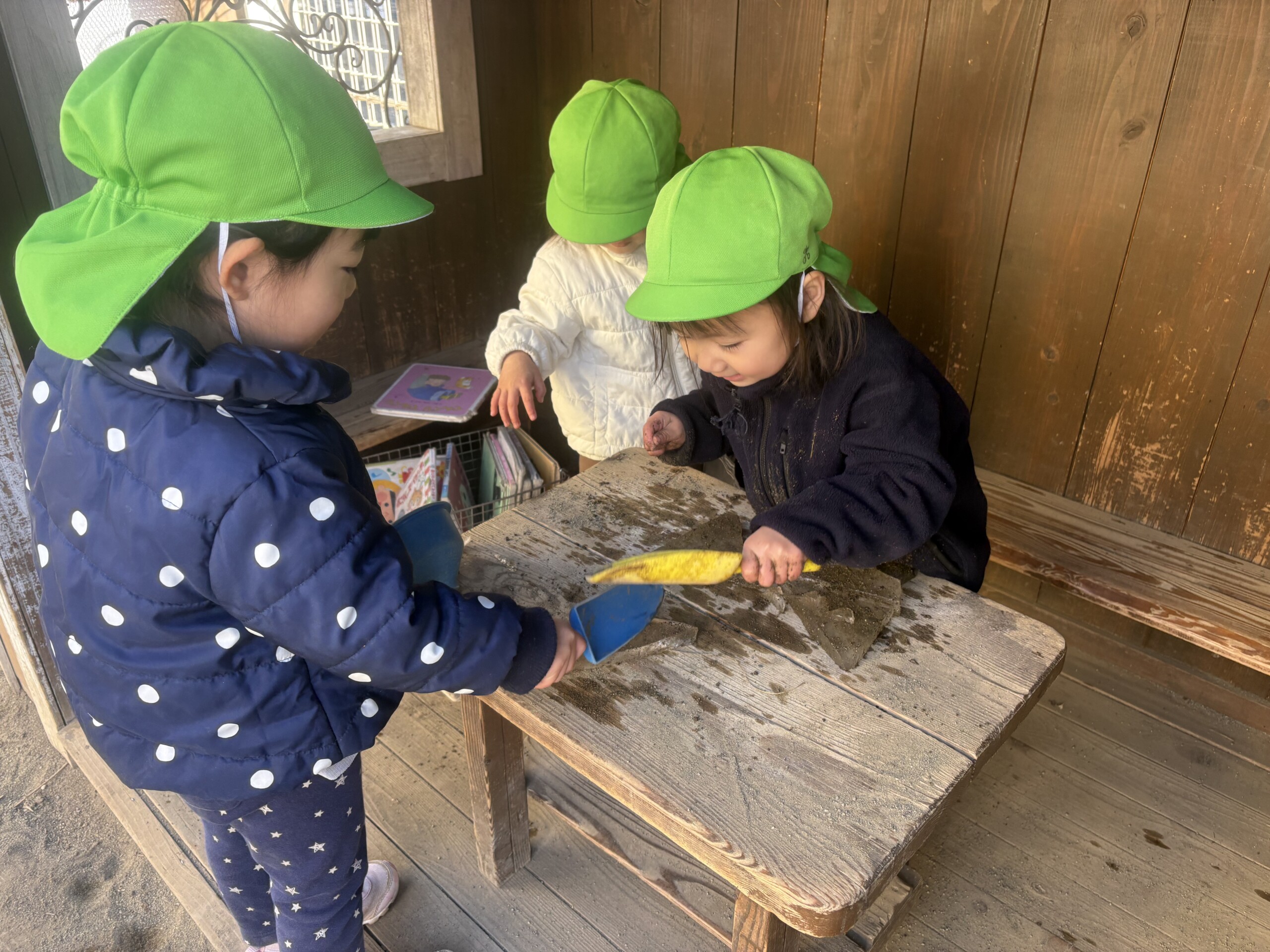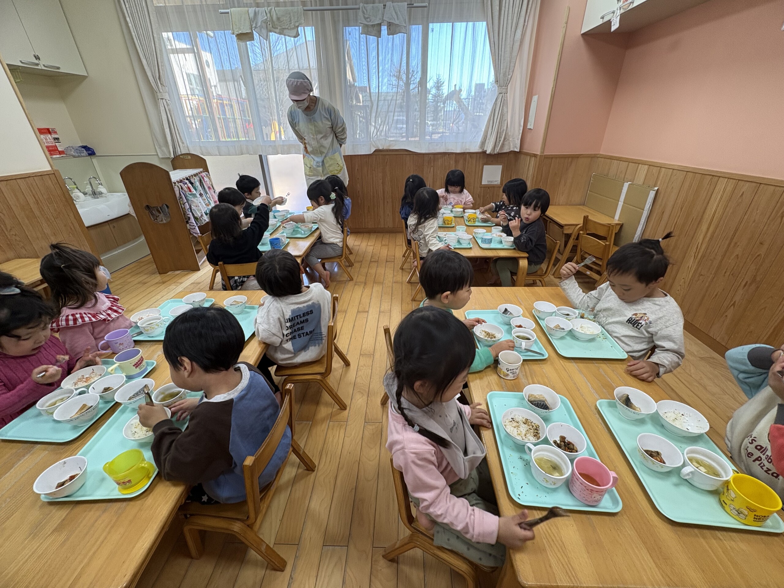 暦の上では春を迎えてもまだ寒い日が続きますね。うさぎ組の子どもたちは寒さに負けず毎日元気いっぱいに過ごしています。「いっしょにあそぼう。」「○○しよう。」と友だちを誘って追いかけっこやかくれんぼなどで体を動かしたり、会話をしながらおままごとやおみせやさんごっこをして、子どもたちだけで遊びを楽しめるようになりました。身の回りのことも声をかけると1人でできるようになってきて、保育者が手伝うことが少なくなりました。みんな次のクラスになることを意識して頑張っています。あっという間にうさぎ組での生活もあと1ヶ月半となりました。一人ひとりの成長を大切にしながら、安心して過ごせるようにしたいと思います。 原島