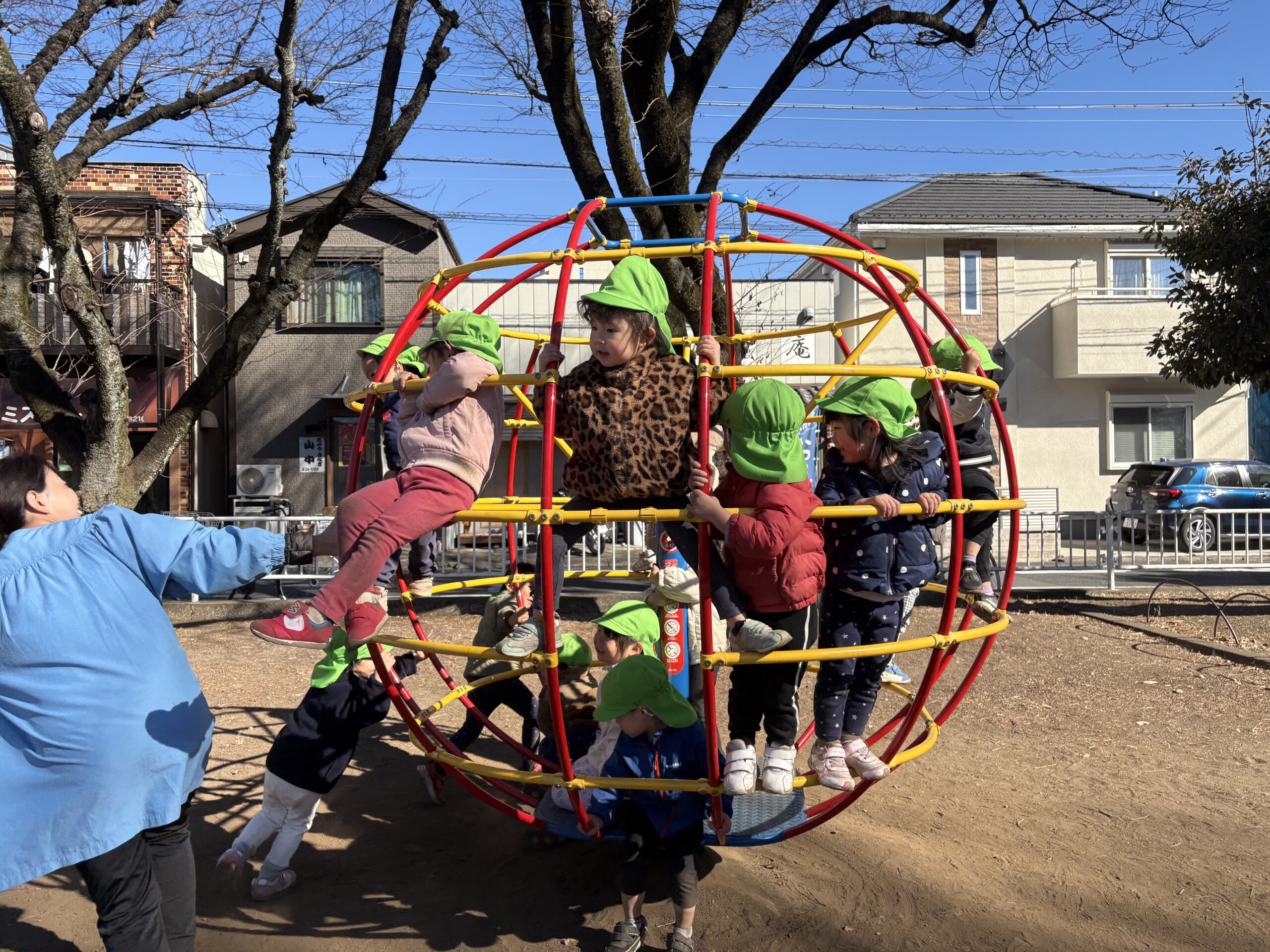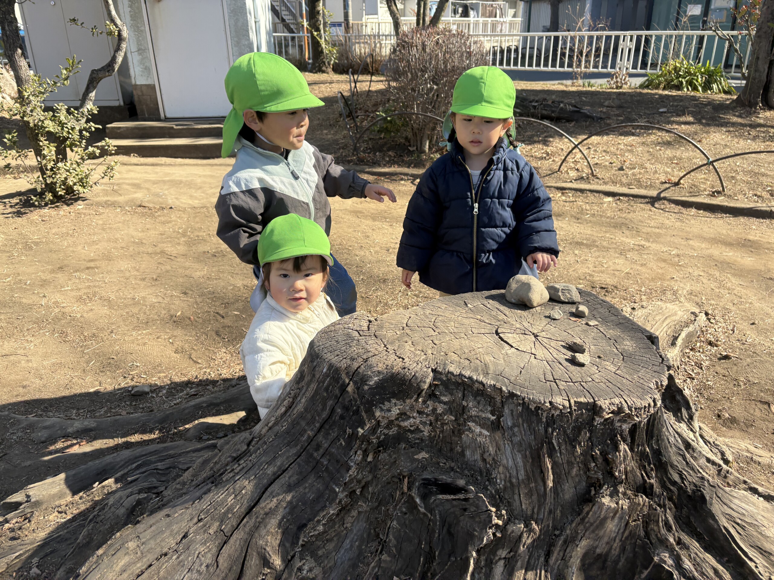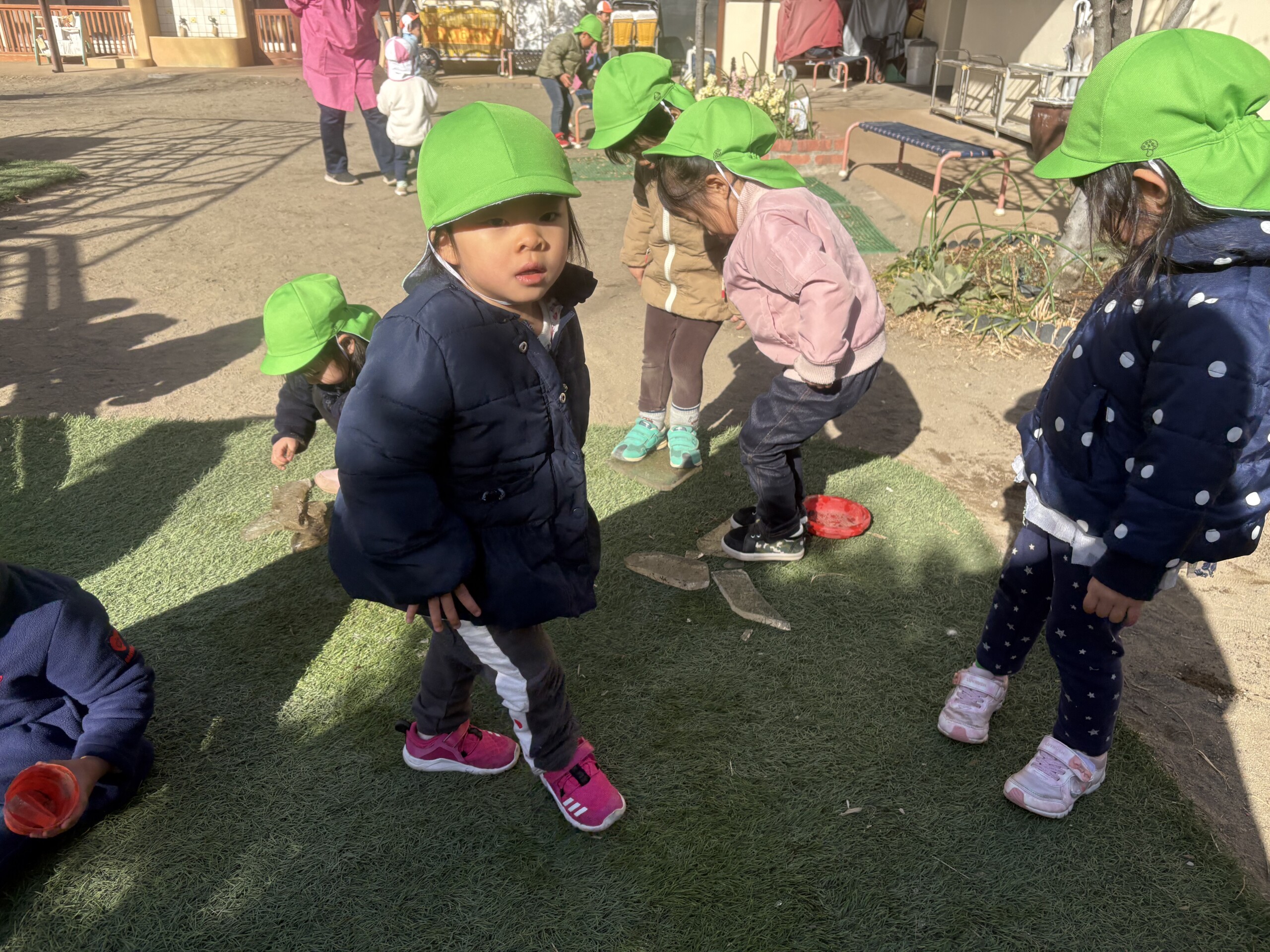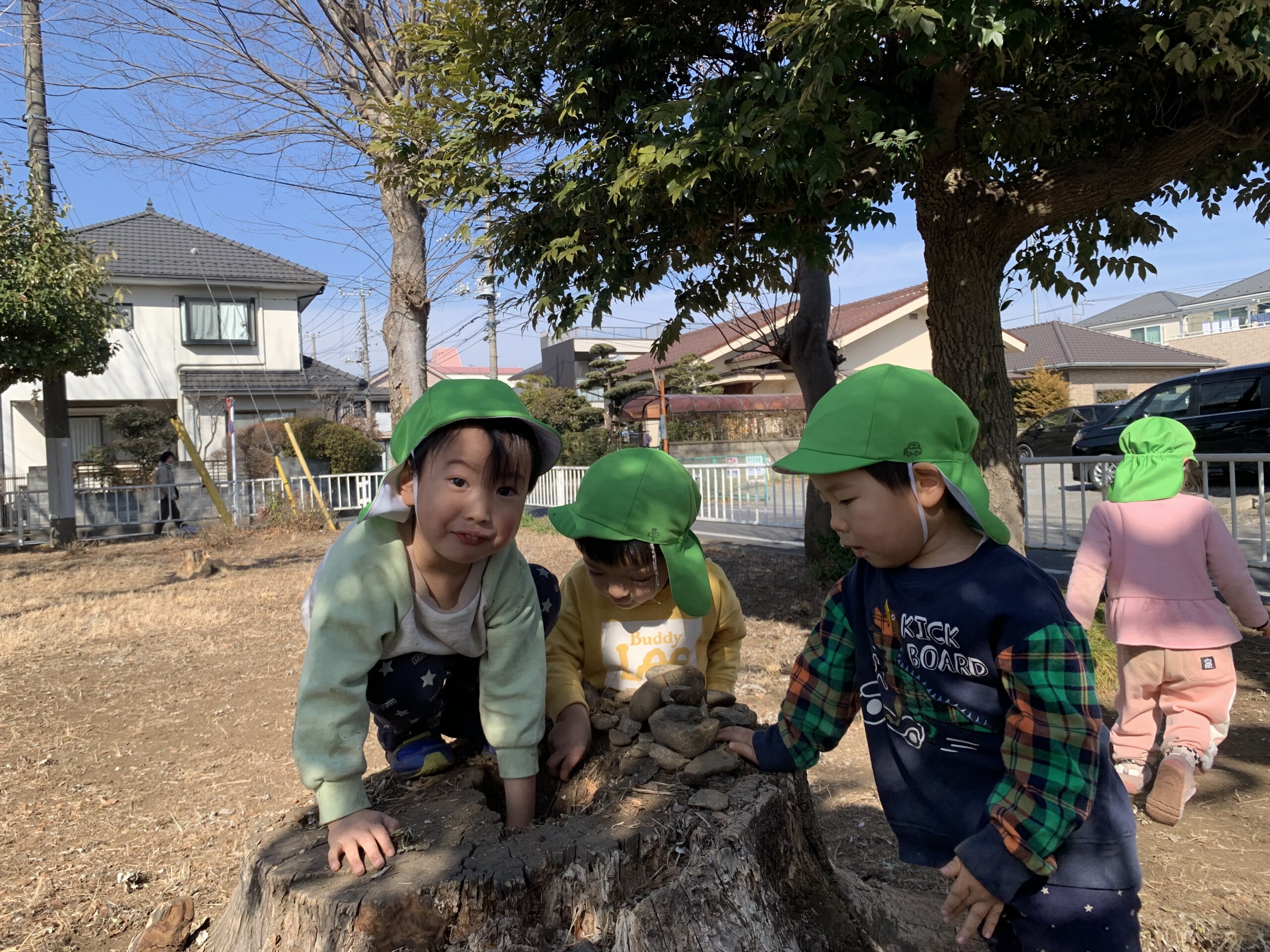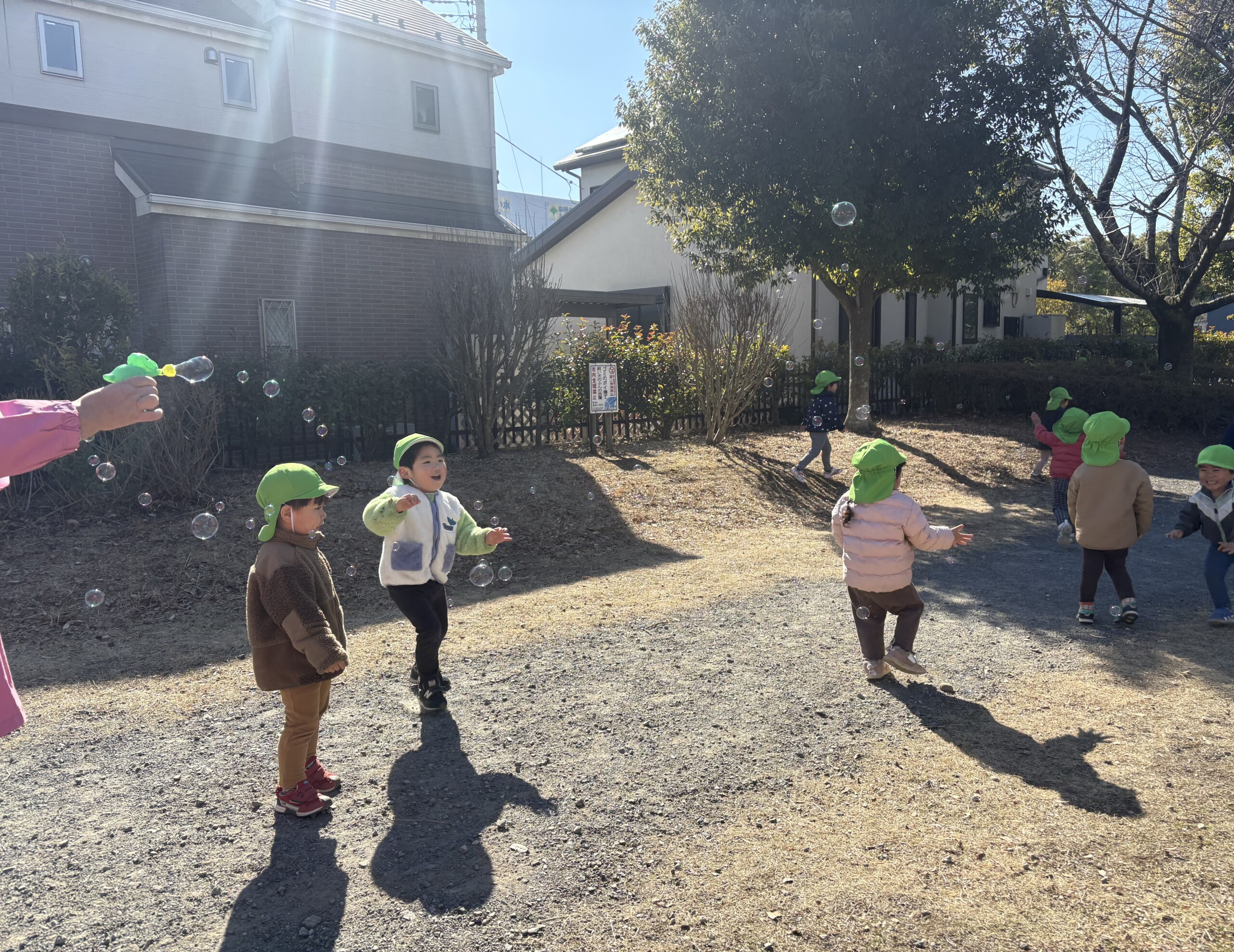 遊具はありませんが友だちと一緒にすぐに遊び始め、走ったりかくれんぼを楽しんでいました。