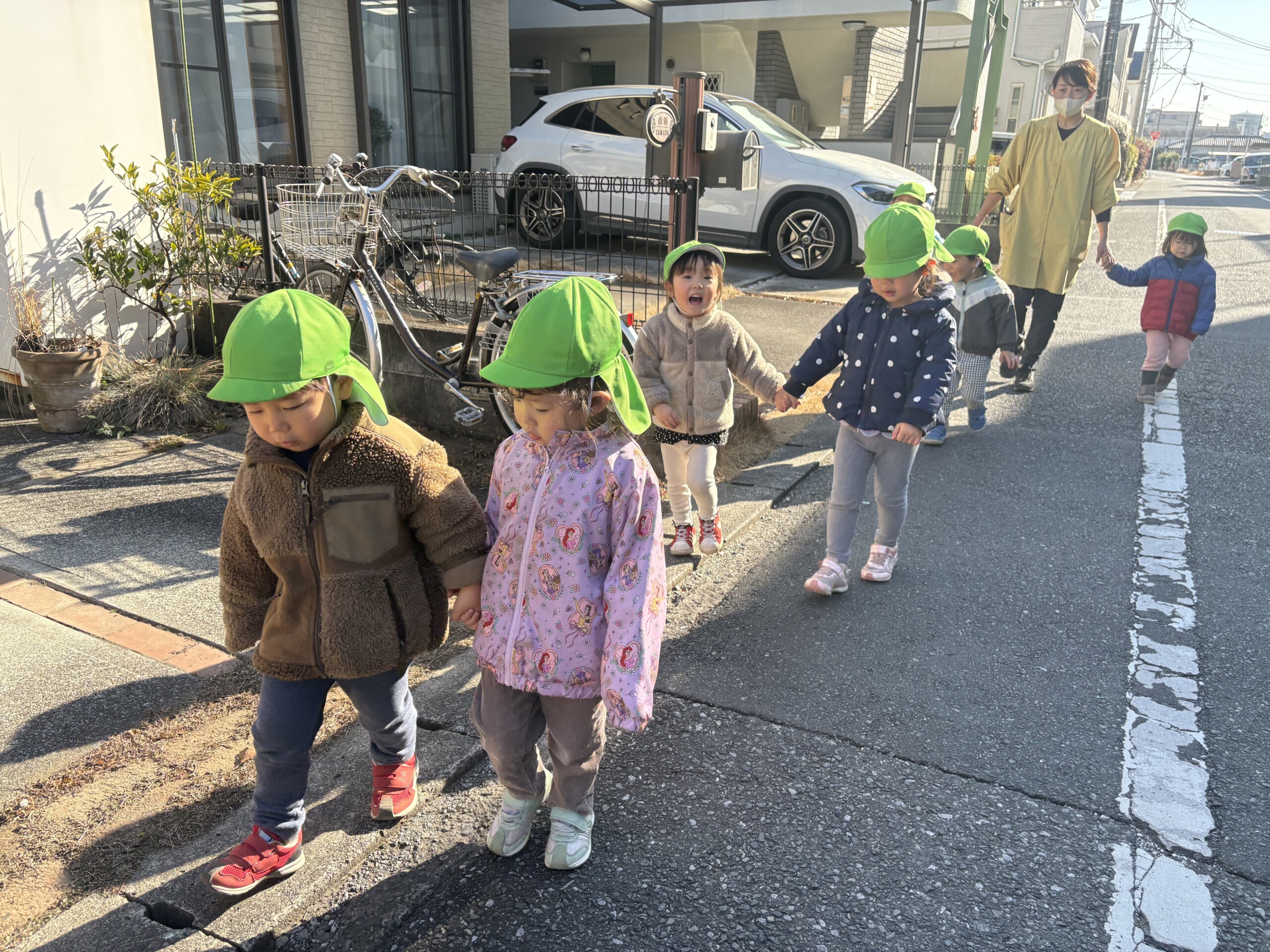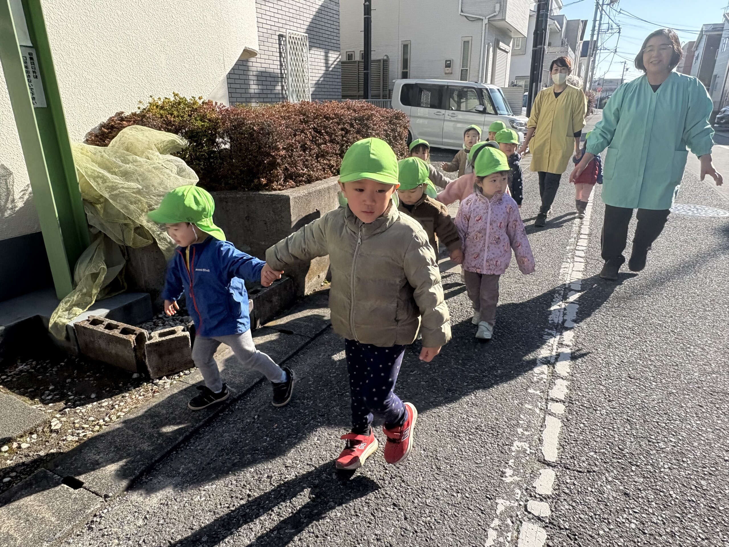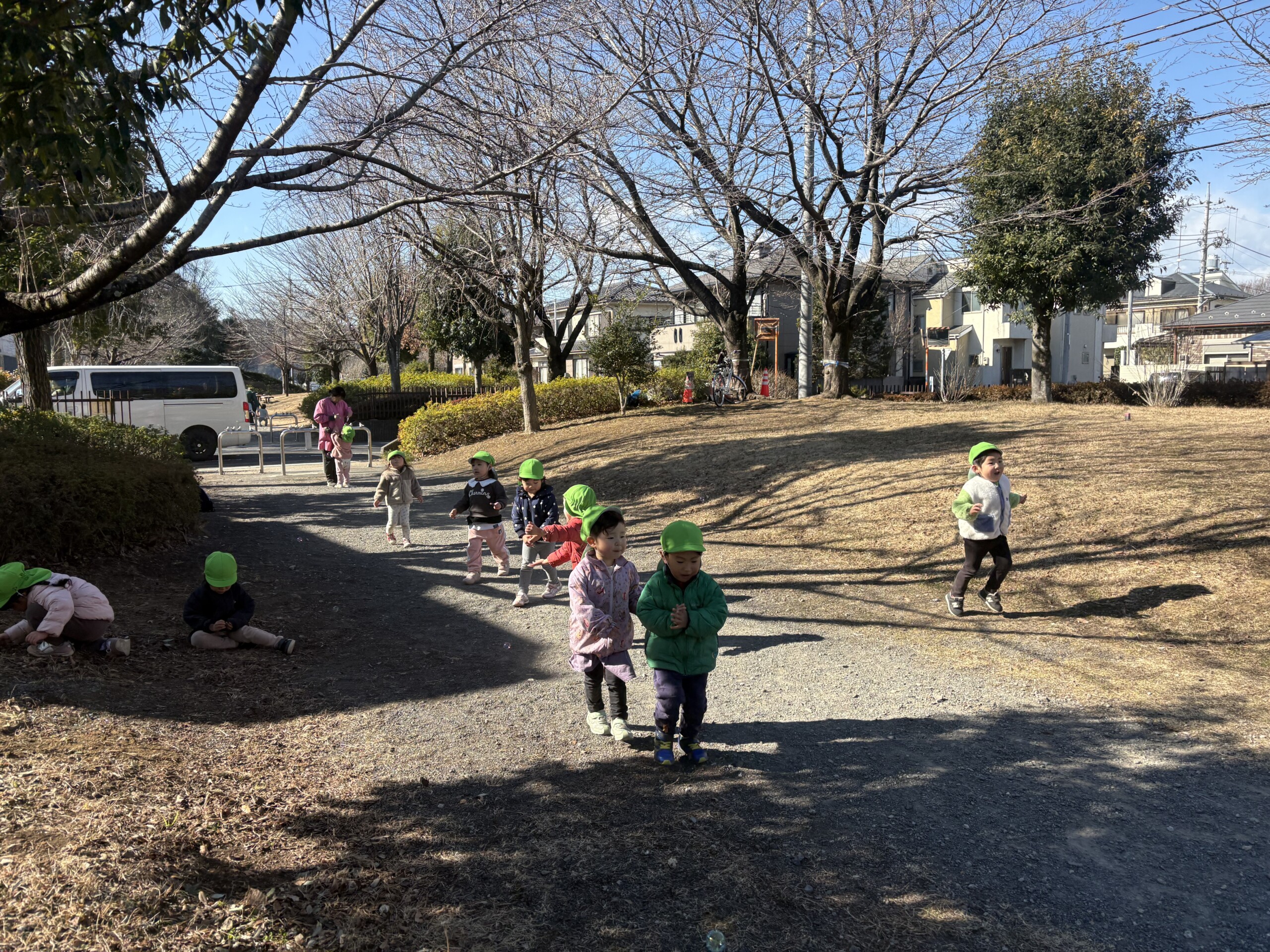 白はけ公園や白はけ緑地に行きました。白はけ公園に行く時だけ友だちと手を繋いで歩きます。