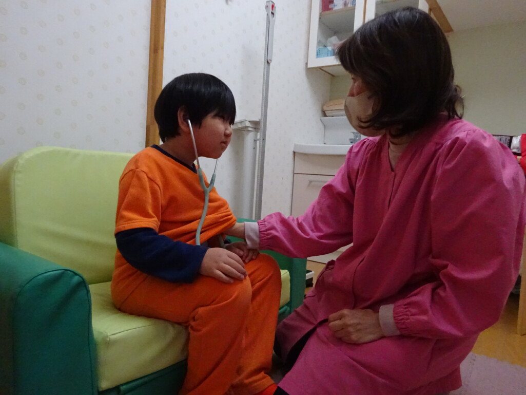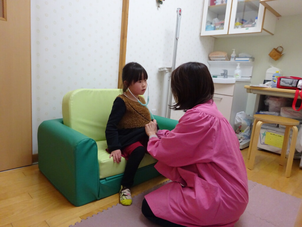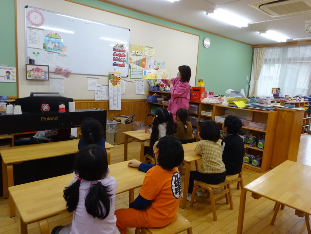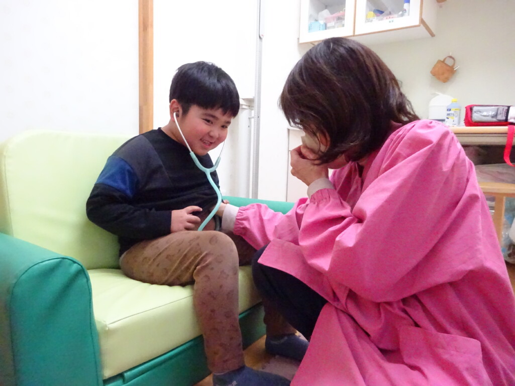 5歳児クラスは、健康教育のまとめとして「自分の心臓の音を聴く」という取り組みを行っています。「どきどきかんじるしんぞう」のお話を聞いて心臓についてのお勉強をしました。「人の心臓は1日に10万回ぐらい動いている」という所を読むと、「えーすごい!」「そんなに動くの?」と興味を持って聞いていました。園に常備しているAEDを見せると、「それAEDっていうんでしょう!」「スーパーにあるの見たよ!」と子どもたちの関心の高さに驚きました。いよいよ聴診器を使って自分の心臓の音を聴きます。聴診器を耳に入れると、みんな真剣な表情です。自分の心臓の音が聴こえるとうれしそうに「ドクドクと音がする」「ドックン、ドックンって聴こえる」「力強さがみなぎる音!」「小さなたいこみたいな音!」「元気な音がした」と教えてくれました。力強い心臓の鼓動を聴いて命の大切さを感じてくれたらうれしいです。 平田